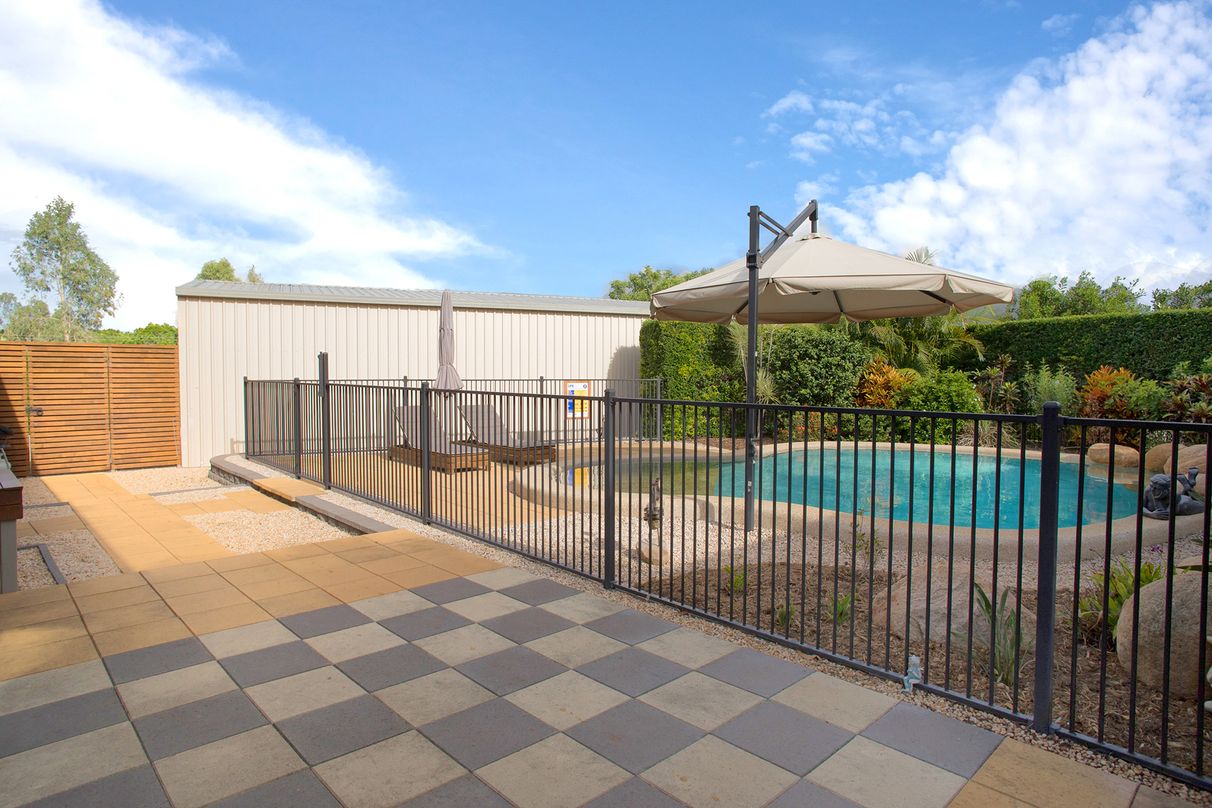 Overlooking the glorious backyard - to the left sits the glistening swimming pool complete with a shade umbrella allowing the kids to play for hours on end, next to the spacious and lush lawn with plenty of room for a slip n slide, garden chess or for the kids to run around. There is a great opportunity to exercise your green thumb with an abundance of beautiful mature gardens and a large variety of fruit and nut trees to prune to taste. Operating on an automated irrigation system which is bore fed, allowing you to spend more time doing the things you love. The property is fully fenced with mature hedges down both sides of drive and around pool giving great privacy. Plus, two 5000 litre rainwater tanks, double garage and a 4 bay shed with 3 phase electricity perfect for the tinkering handyman.