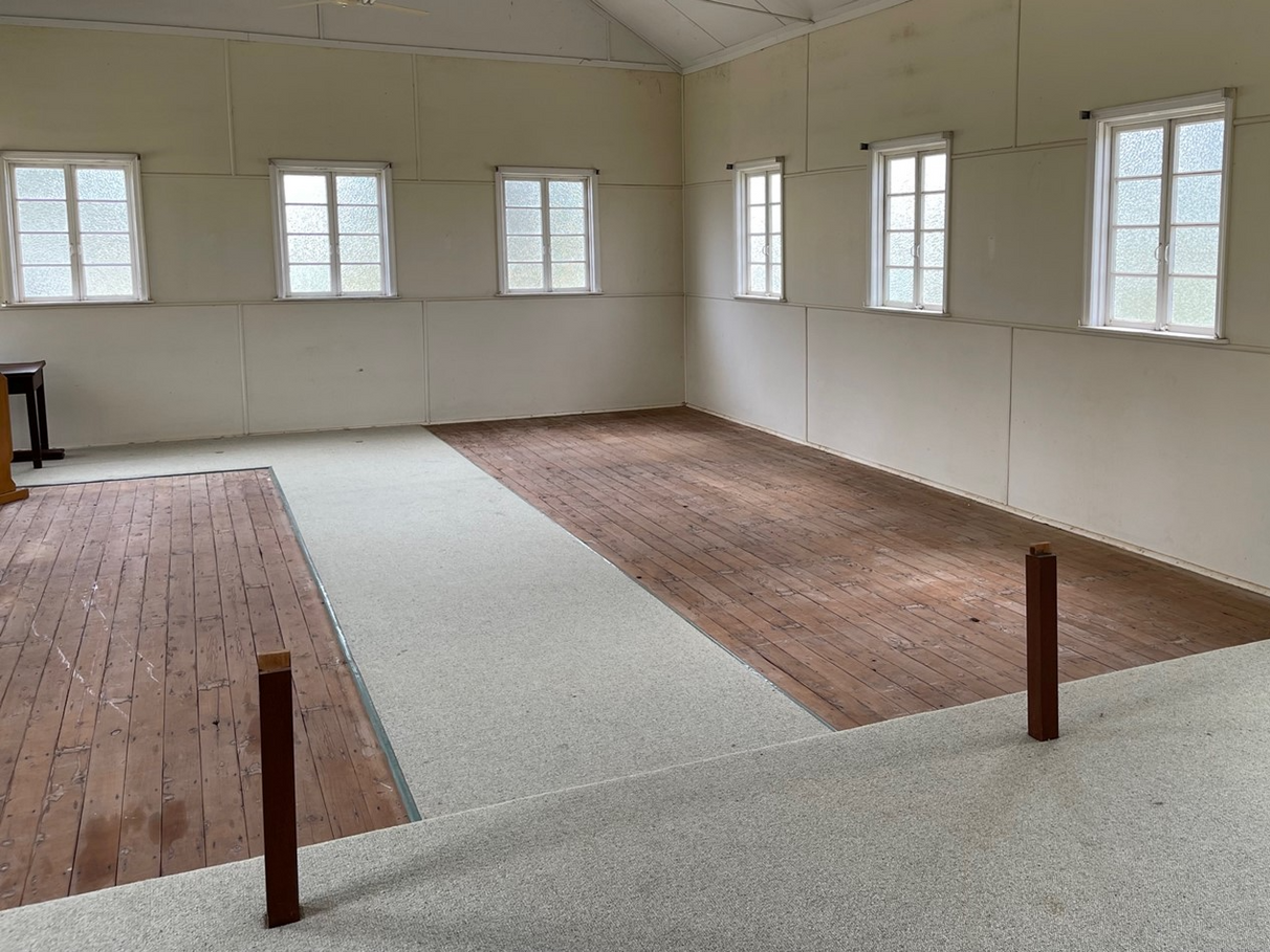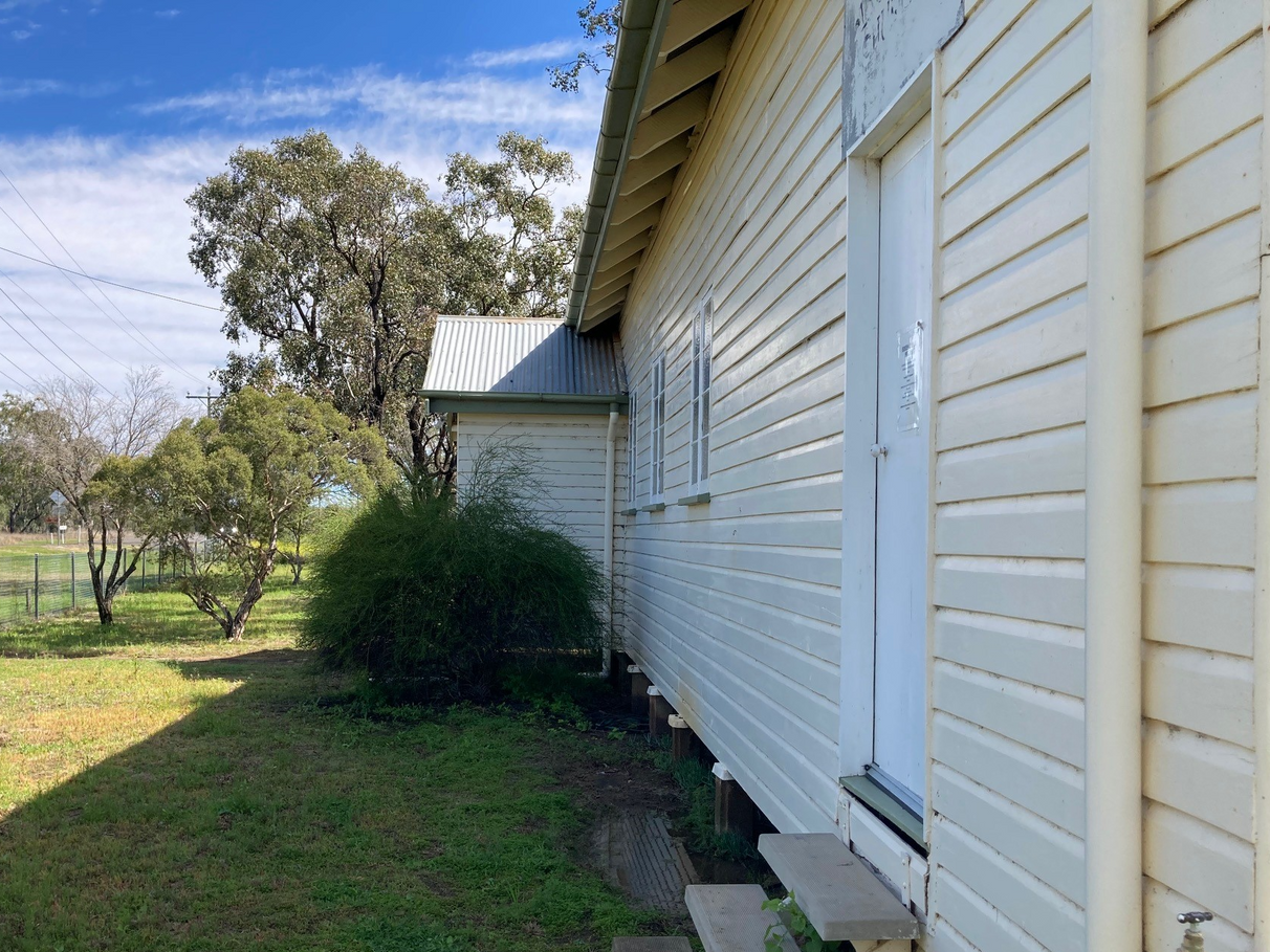The church weatherboard building, circa 1955 has high ceilings, timber floorboards, kitchenette and two internal toilets (no bathroom facilities).