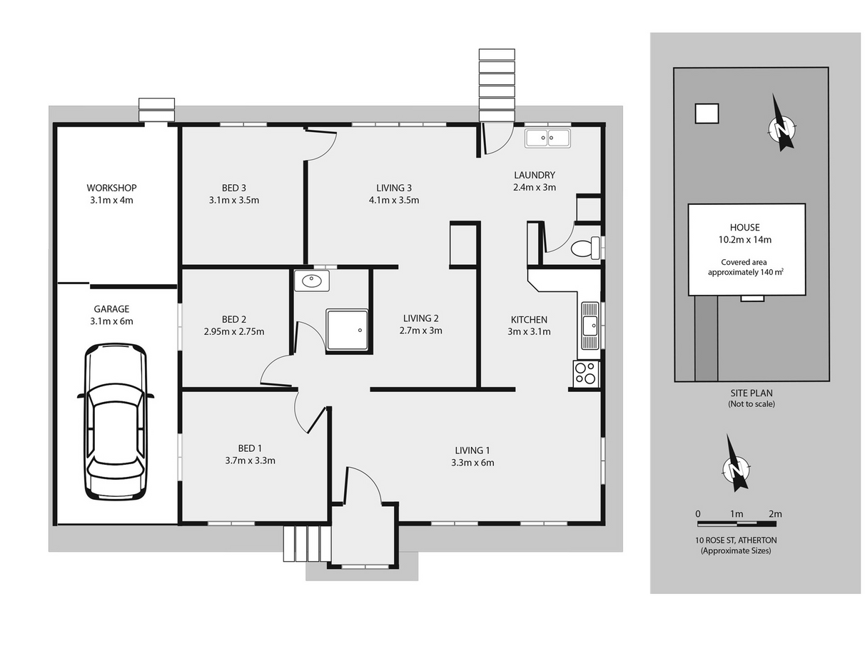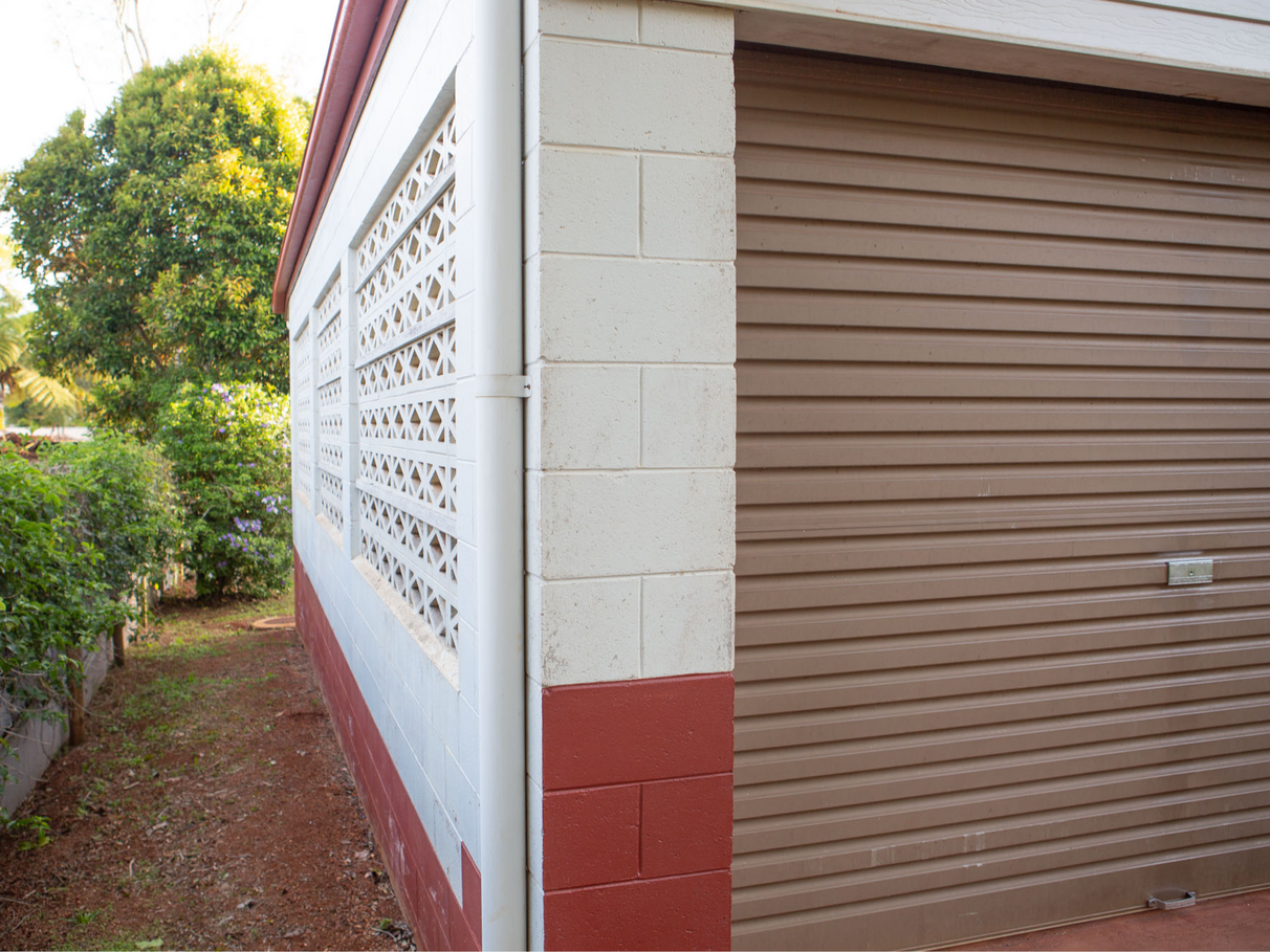 - Carport attached to side of house with lockup store room or workroom