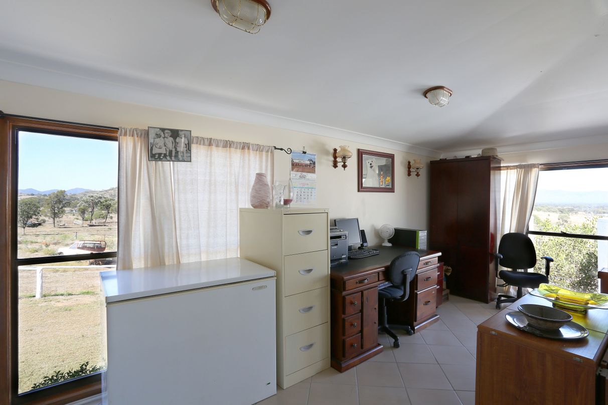 Beautiful timber colonial style 4 bedroom homestead is centrally positioned on the property placing it in a very private setting. Lounge and dining boast high Cathedral ceilings. Timber kitchen, second large living area with very large connecting office. Air conditioning and ceiling fans throughout with double full glass French doors from each room out on to the wrap around verandahs. 80,000 litre in-ground swimming pool make this the perfect family home for living in the Queensland climate. Large shed with workshop and double car parking.