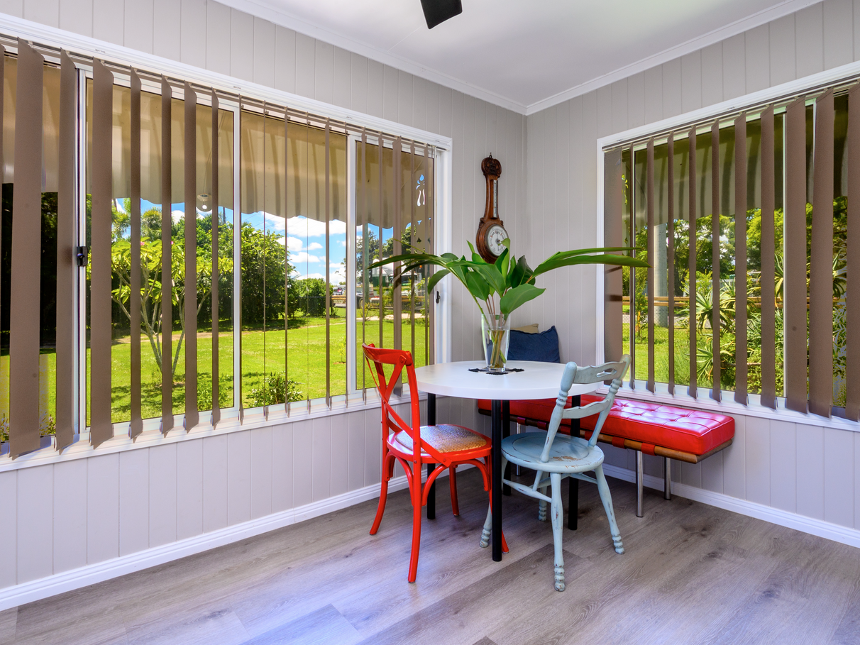 Gifted with wide facing front & back doors form a natural breezeway, combine with casement & screened windows, capturing relieving afternoon breezes on those hot days as functional ceiling fans circulate airflow throughout.