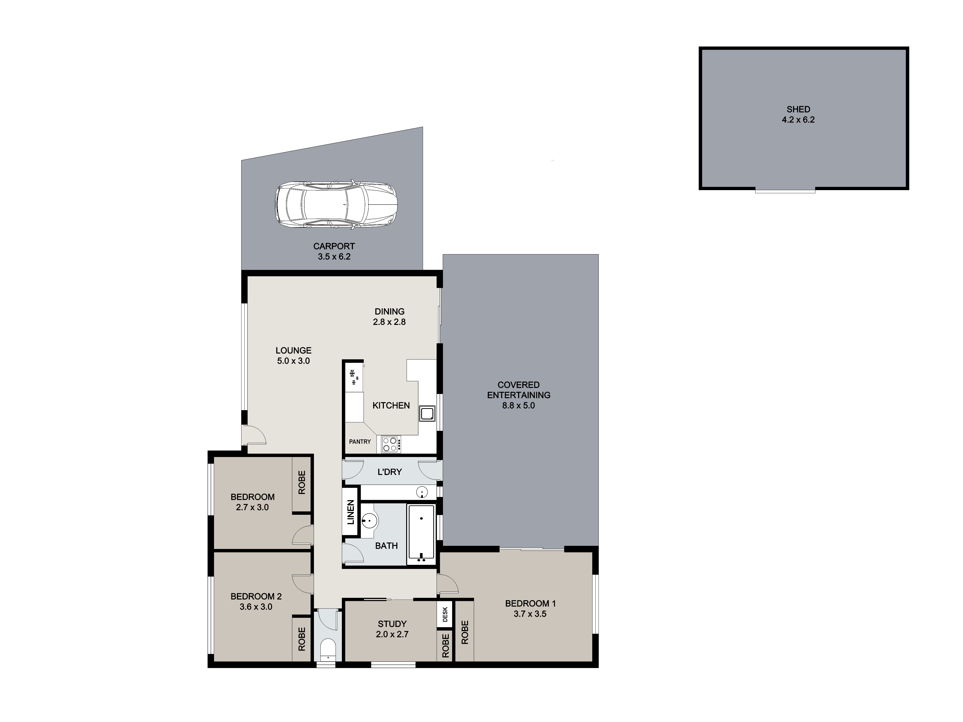 Convenient Carport: Keep your vehicles shaded with a roomy carport, offering extra storage for bikes, tools, or outdoor gear.