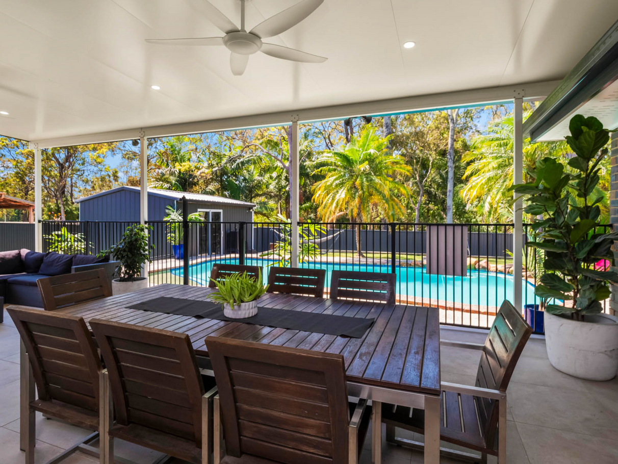 Private Outdoor Oasis: Enjoy a private in-ground pool, perfect for cooling off in Queensland’s sunshine! The expansive 658m² fully fenced backyard, backing onto Ridgewood Reserve for added privacy, includes a lush lawn, a spacious 6.2x4.2m shed for storage or hobbies, and a large 9mx5m covered outdoor area.