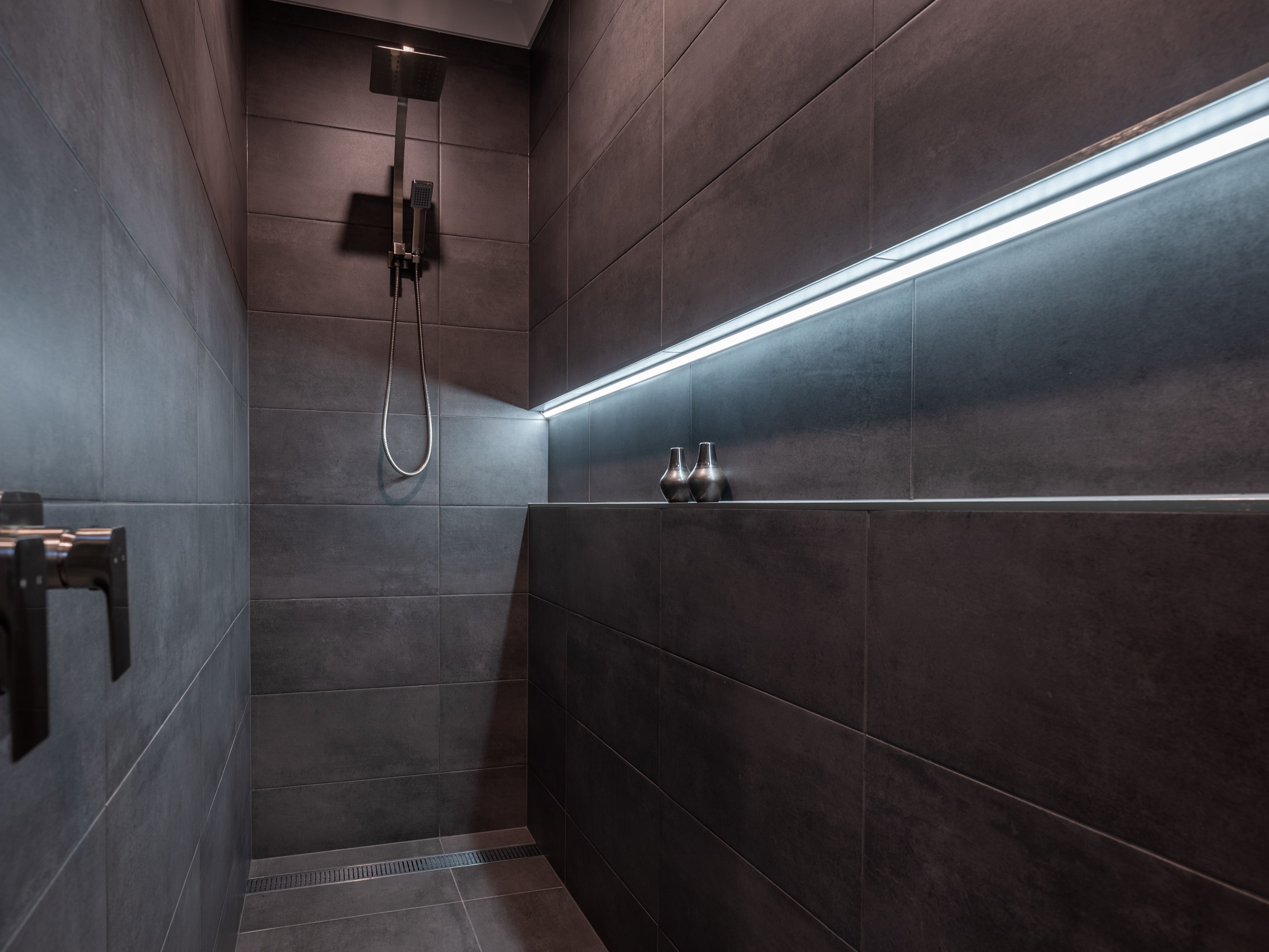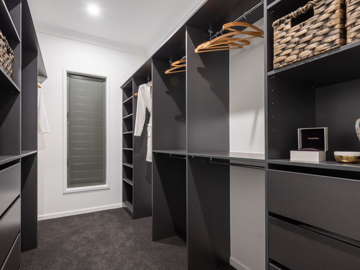 There are four bedrooms in total, three bedrooms are located off the children’s ‘wing’ at the front of the home. The lavish master suite invokes feelings of calm, relaxation and tranquility. The perfect space for busy parents to unwind. Unwind by soaking in the comfy freestanding bath tub that overlooks the rear lush, landscaped garden and private parents only pergola. The master en-suite also features a walk-in shower with stylish La Casa bathroom fixtures including 2 in 1 shower and 2nd rain shower head. The full-length soap niche includes cool LED strip lighting. Custom cabinetry with ample storage offers plenty of wardrobe space in the master bedroom.