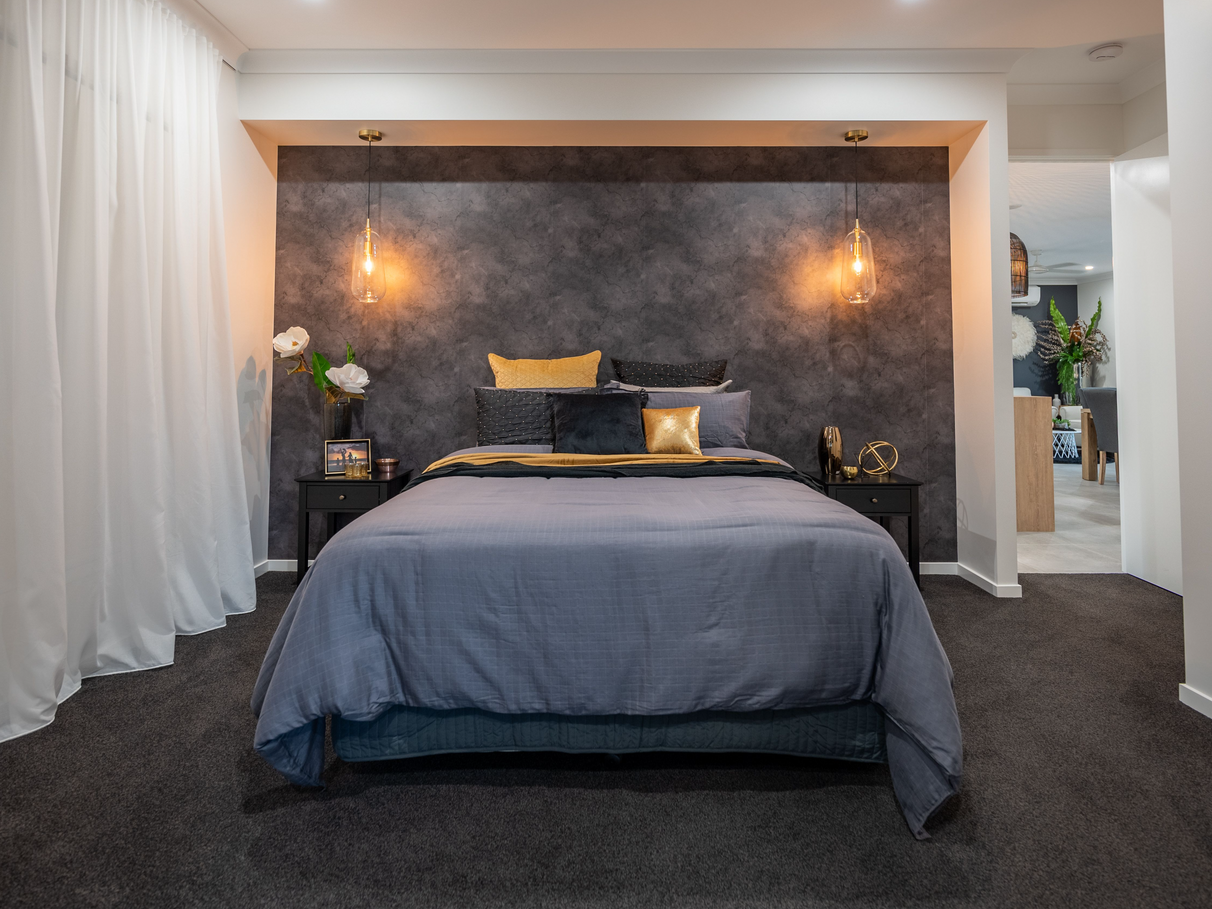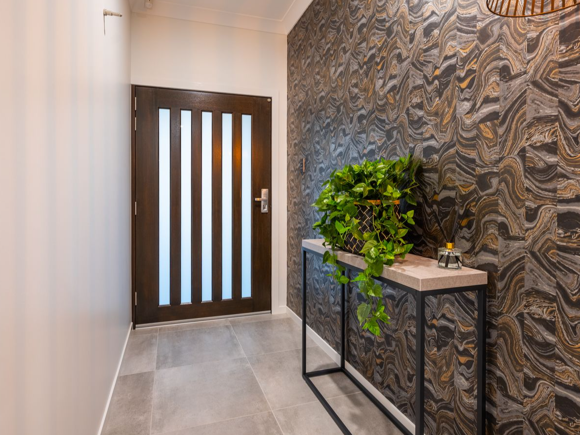 Timelessly elegant and opulent, this family home has a striking, contemporary colour palette comprising of a combination of wall paper and paint feature colours throughout. The home comprises an open plan living, dining and kitchen space which adjoins the large comfy theatre which can be separated by feature cavity sliding doors - perfect for Family Movie Nights !