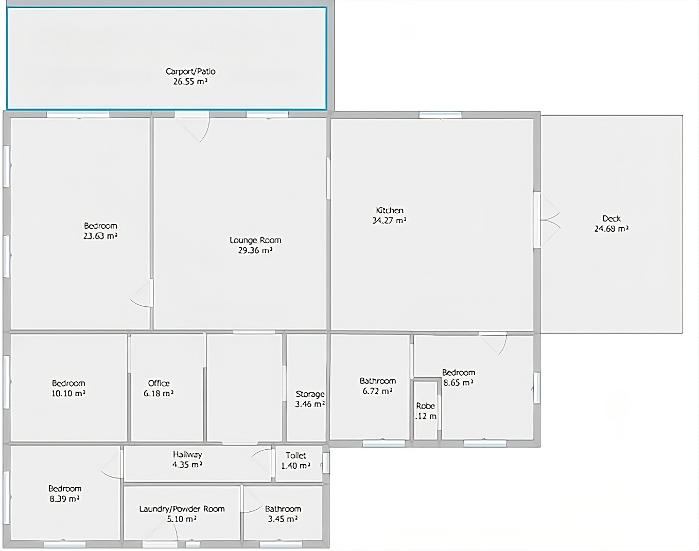 The property has a large house- 4 bedrooms, 2 bathrooms, country kitchen, office, lounge and back deck. (180sqm under roof)