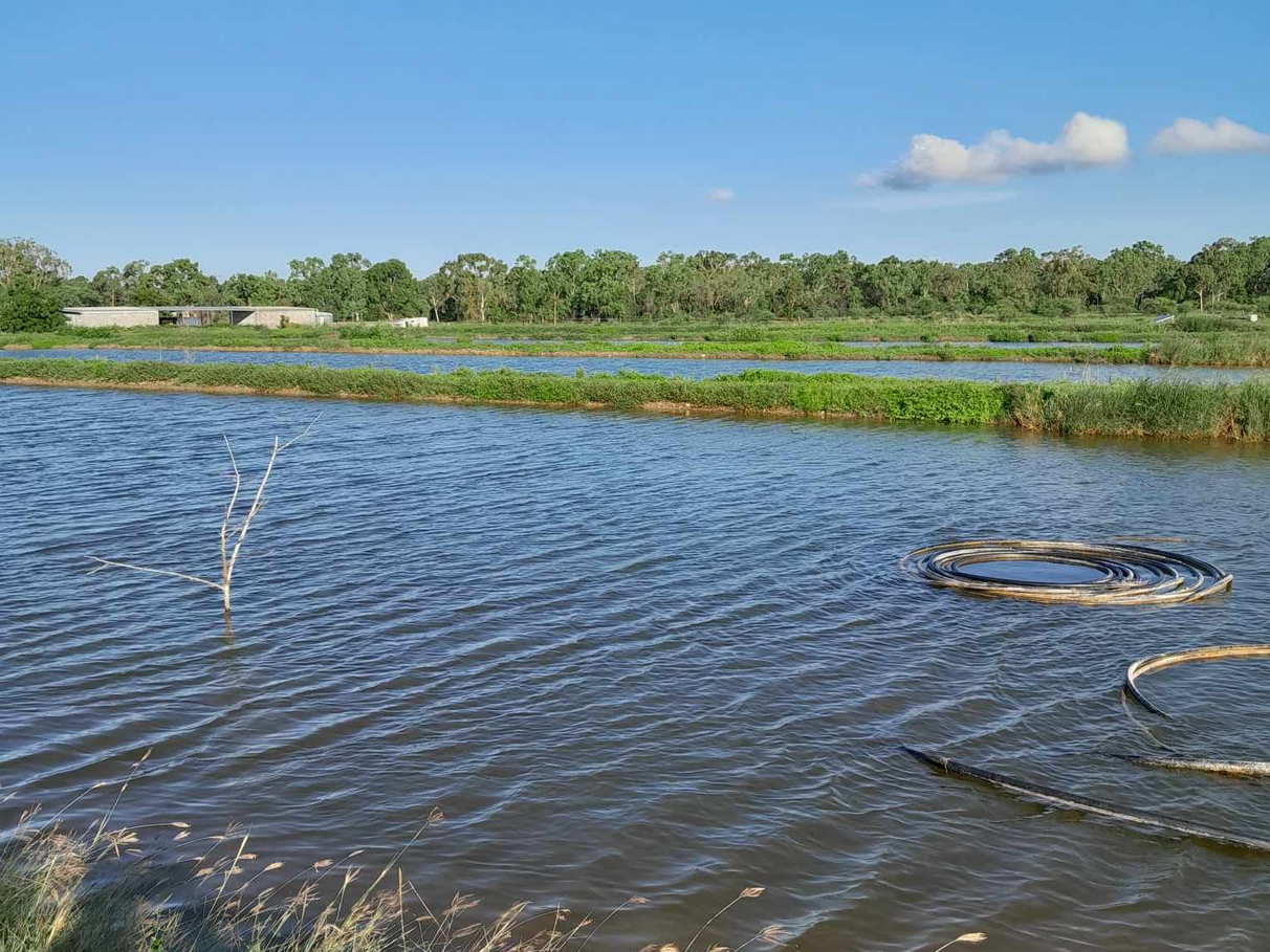 The ponds are kept full by two solar powered bore pumps. Heaps of underground water only 6 metres down.