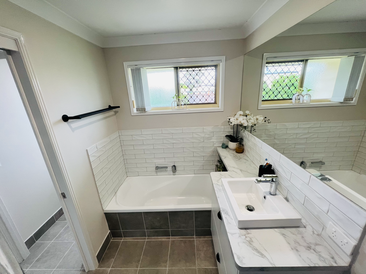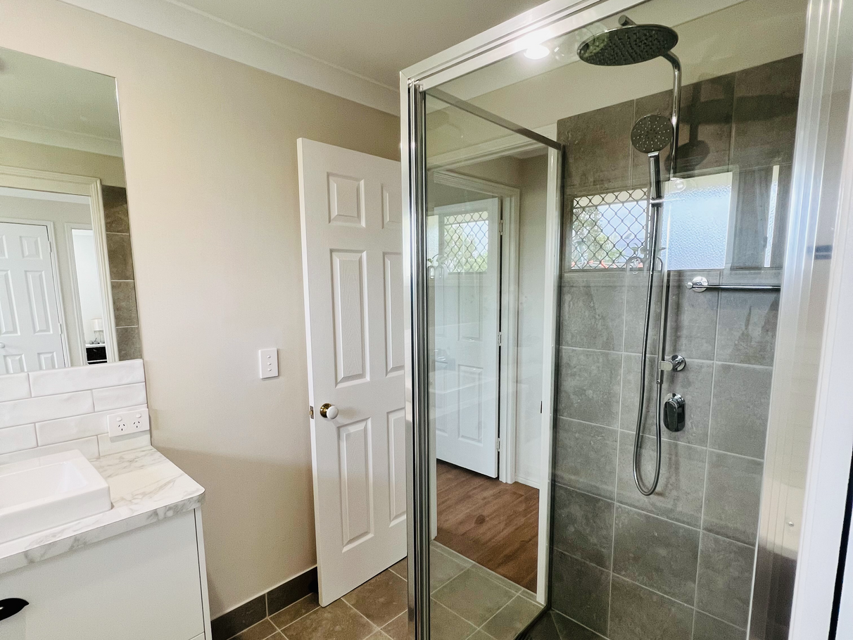 - Main (two-way) bathroom with a separate shower and bath. Toilet separate with new toilet suite.