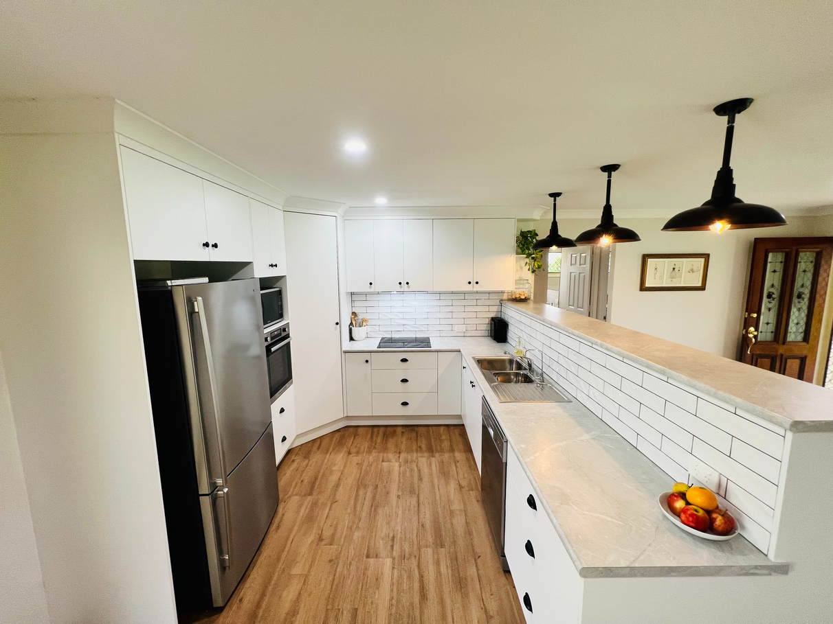 - New kitchen and appliances including new bench top electric stove, range hood, oven, dishwasher, and under bench water filtration system. Large corner pantry with lighting and ample storage.