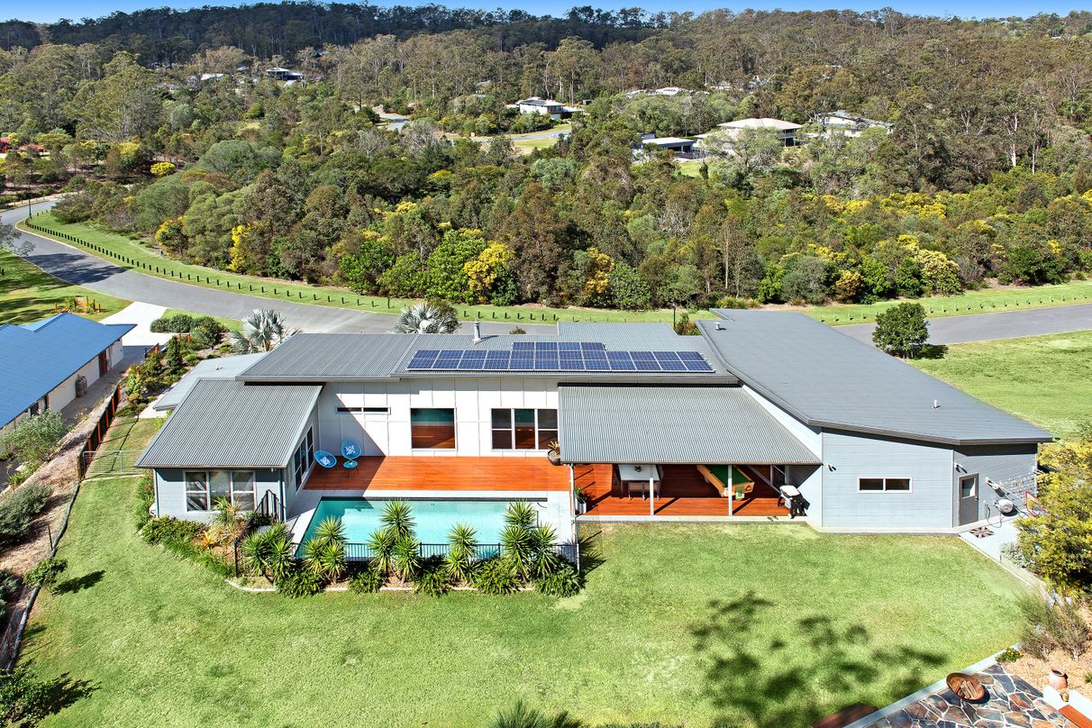 This stunning contemporary home is set on a superbly elevated one acre block in the prestigious Windarra estate in the suburb of Bunya.