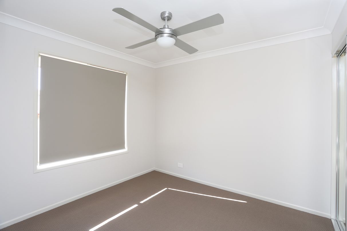 Four large carpeted bedrooms with built-in wardrobes and fans
