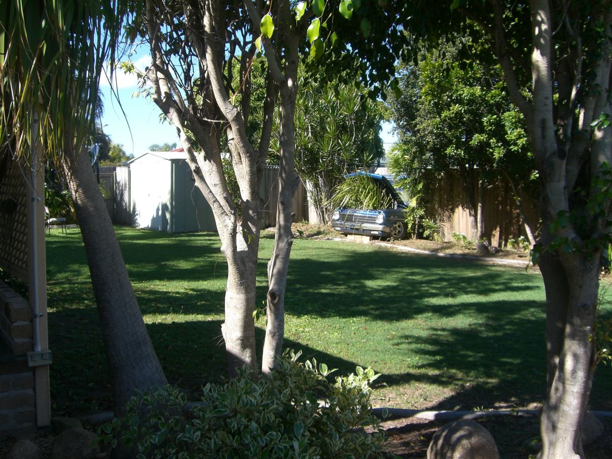 The house itself is surrounded by established palms, trees and shrubs providing a beautiful green, shady and relaxing sub tropical garden environment. The roomy 830sqm block offers a spacious back yard (complete with garden shed, seperate storage shed and mandarin tree) and a lovely easy-care frontage.