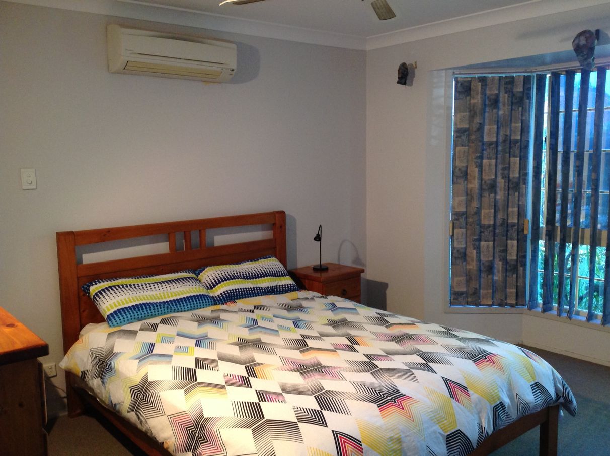 The three bedrooms (four if you convert the garage) are well situated to provide privacy for yourself and the family. The main (air conditioned) bedroom features a walk through robe and ensuite. Bedroom number two has an adjoining bathroom (with bath and shower) while bedroom three has the option of becoming your very own quiet and private office/study. The main toilet is centrally located between bedrooms two and three and the laundry is nearby. Most sun-facing windows have solar window tinting for additional cooling and privacy and all have insect screens and security mesh.