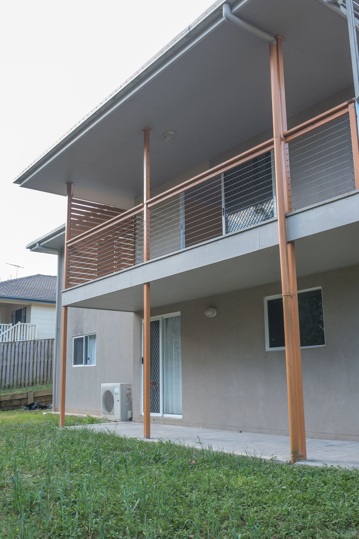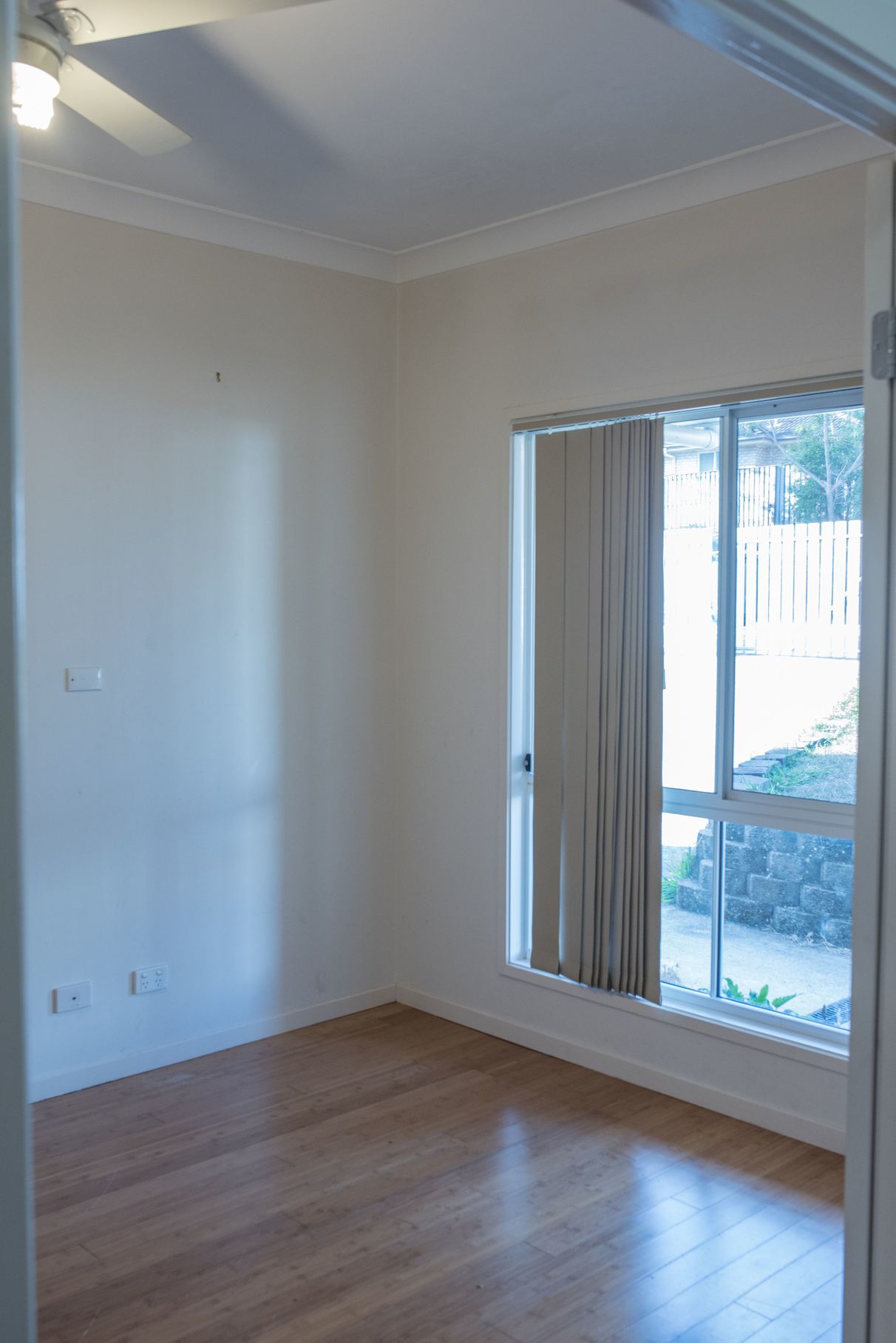 Reverse cycle air conditioning unit. Security screens are in place on all windows and doors.