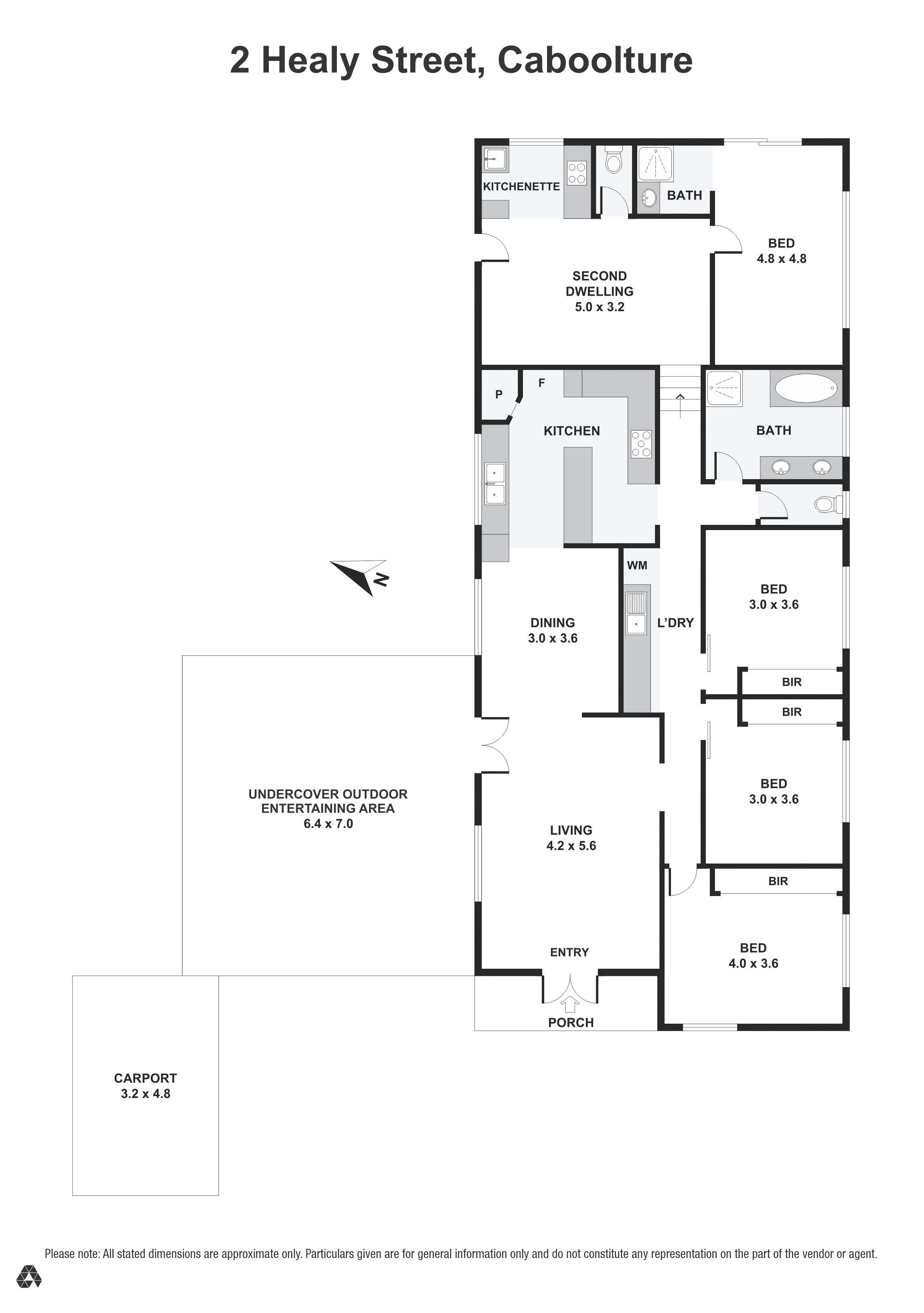 The main house has 3 bedrooms, a large lounge room, central kitchen, galley laundry, and a spacious bathroom with separate toilet.