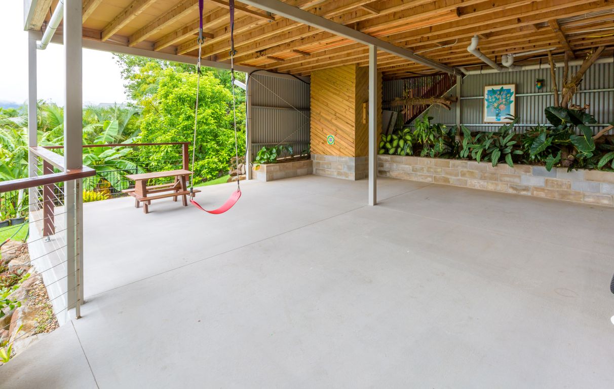 Downstairs a potential fourth bedroom is air-conditioned & already plumbed.Currently used as a gym but so much potential. Large concreted undercover area has many benefits of children's play or another entertainment area.