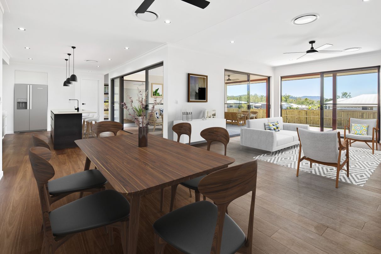With extensive timber decking outdoors, shaded under the main roof, and the large glass sliding doors from all living areas creates the ultimate for entertaining.