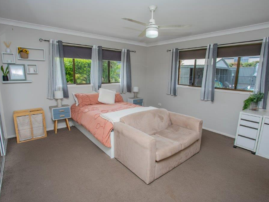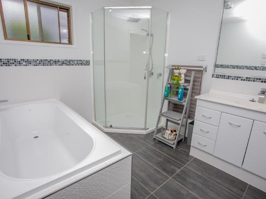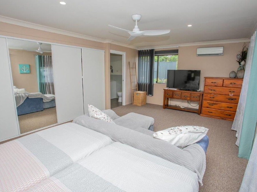 The large master bedroom is located separately from the other bedrooms - a great parents retreat. It has an ensuite with walk in rainfall shower, vanity and toilet, as well as a full wall of built in wardrobes. This bedroom has its own reverse cycle air conditioning unit and ceiling fan. TV point.