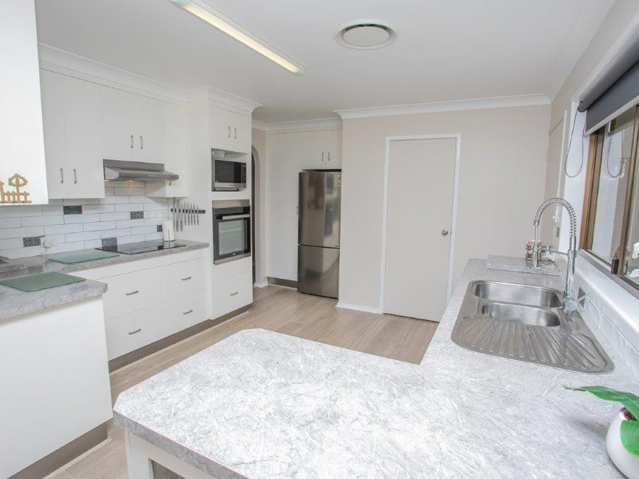 The garden and under covered outdoor patio area (with lighting, fan and TV point) is accessed through the patio doors from the dining area : the kitchen has been recently renovated with built in oven and cooktop. You also have the added space of a walk in pantry food cupboard as well as an inline water filtration system!