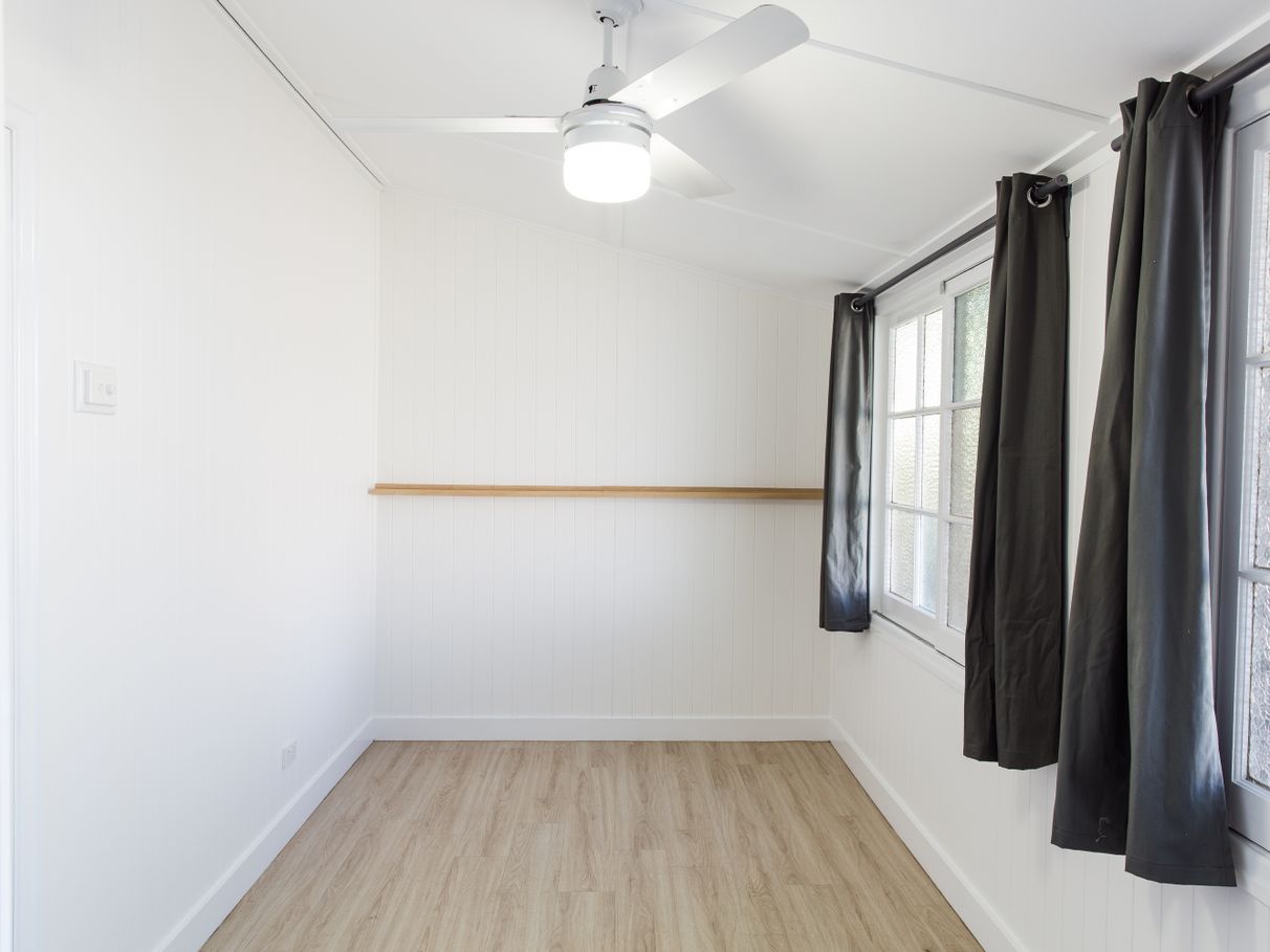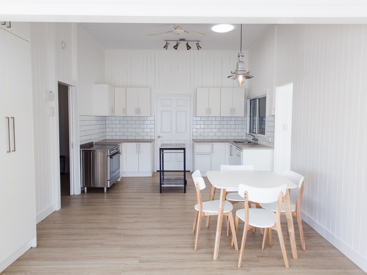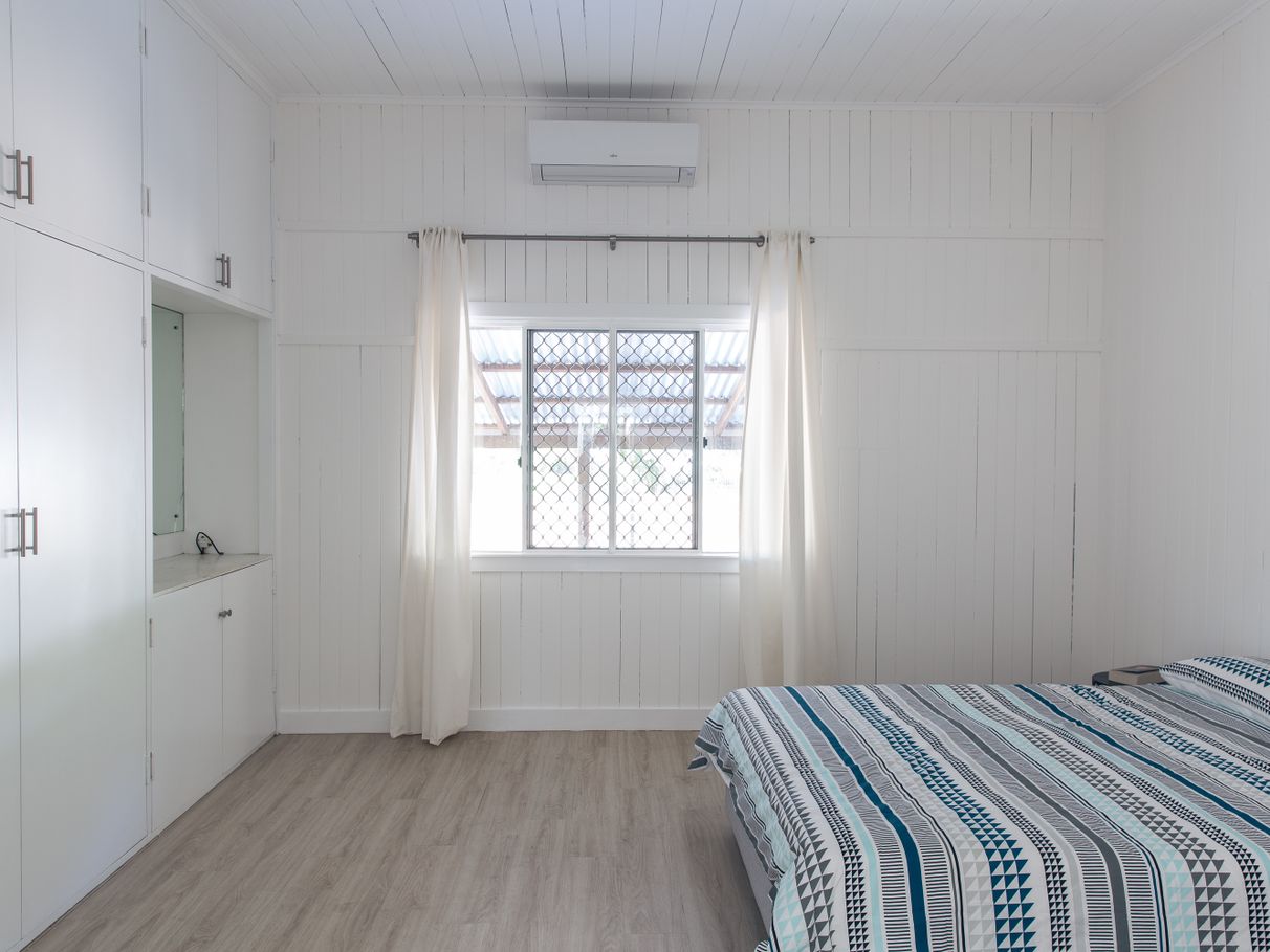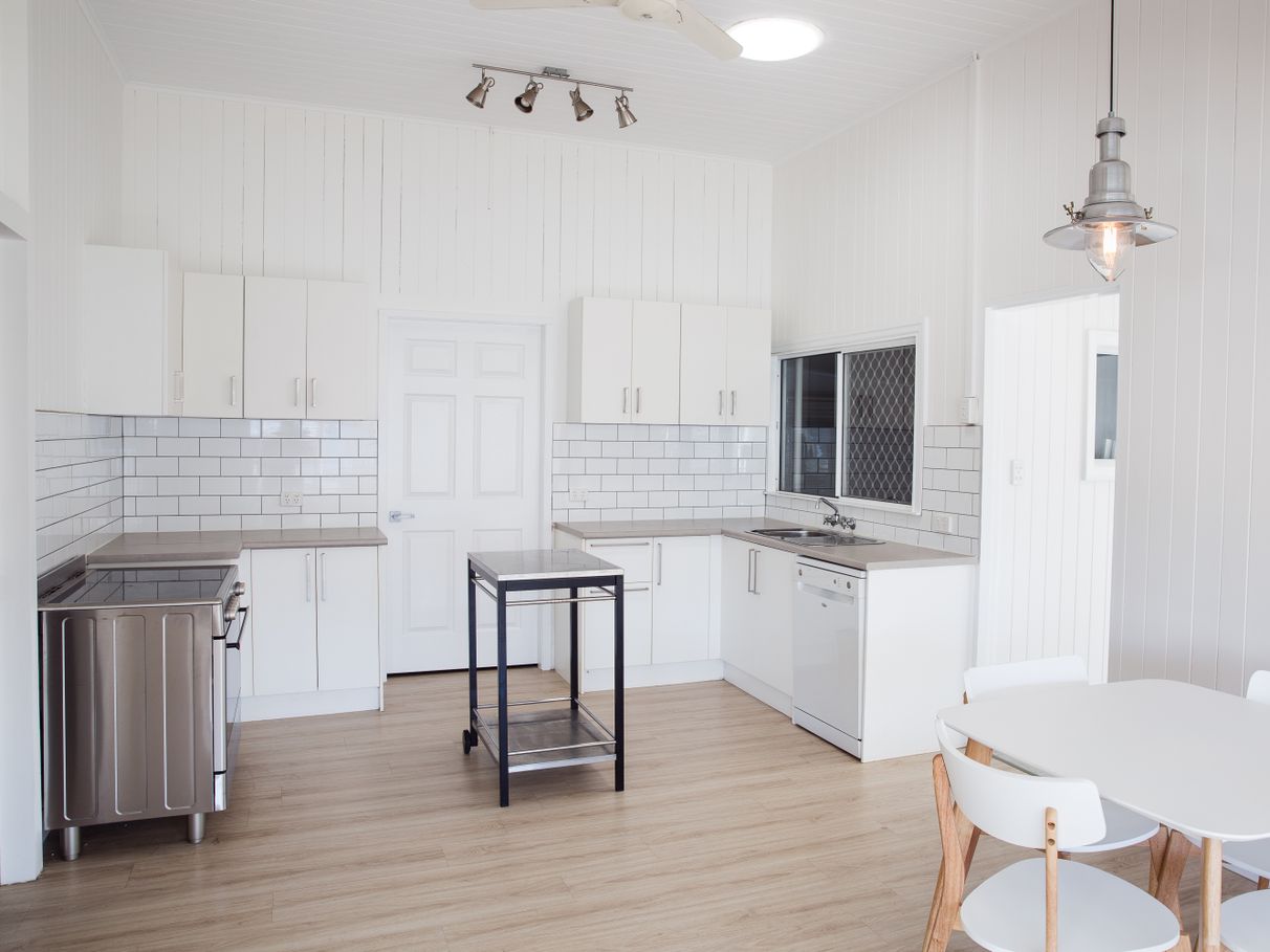 A crisp colour palette applied inside and out, timber-laminate floorboards, split system air-conditioning, ceiling fans, abundant storage; stylish pendant & LED lighting, contemporary decor and stunning, up-to-the-minute bathroom, laundry and kitchen renovations - in a wonderful melding of classic, Queenslander style.