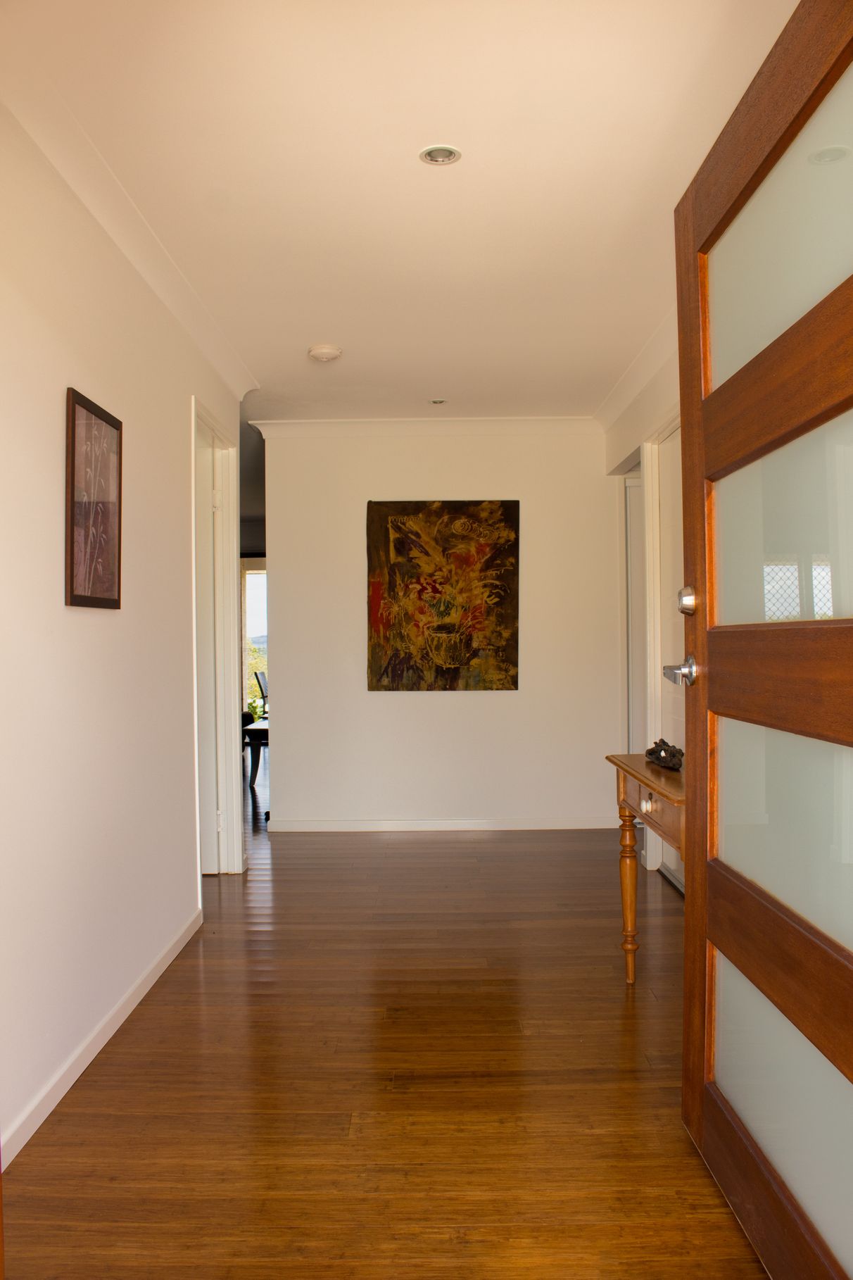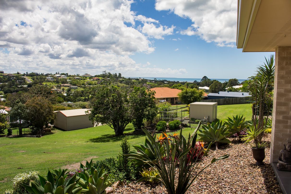 This superb 3 bedroom coastal property has magnificent panoramic views of the coast line, rural outlook and the local golf course. The super king master suite includes a walk through wardrobe through to an amazing ensuite which includes an extra large bath, double basin vanity and a monsoon shower. The accompanying 2 bedrooms are queen size and include mirrored built in wardrobes. The open plan living space includes a large lounge area flowing through to a combined kitchen and dining area. The kitchen is sure to appeal to gourmets and includes stone benchtops a 900mm gas/electiric oven a stainless steel french door refrigerator and a dish draw dishwasher. An added luxury is a fully fitted out walk in chefs pantry which is 5 m long. The second bathroom is huge with a double vanity and walk in shower. The living area opens onto a fully tiled alfresco dining area with spectacular views. A double garage with laundry is attached and for extra space there is a 6x6m shed with a carport on the property. Internal fittings are of the highest standard and include solid floating bamboo flooring and blinds throughout. There are ceiling fans throughout and air-conditioning is included. The home has a solar hot water system and is equipped with 2 kva solar panels which feed into the grid. The home is situated on an almost 3/4 acre block with low maintenance landscaped gardens.