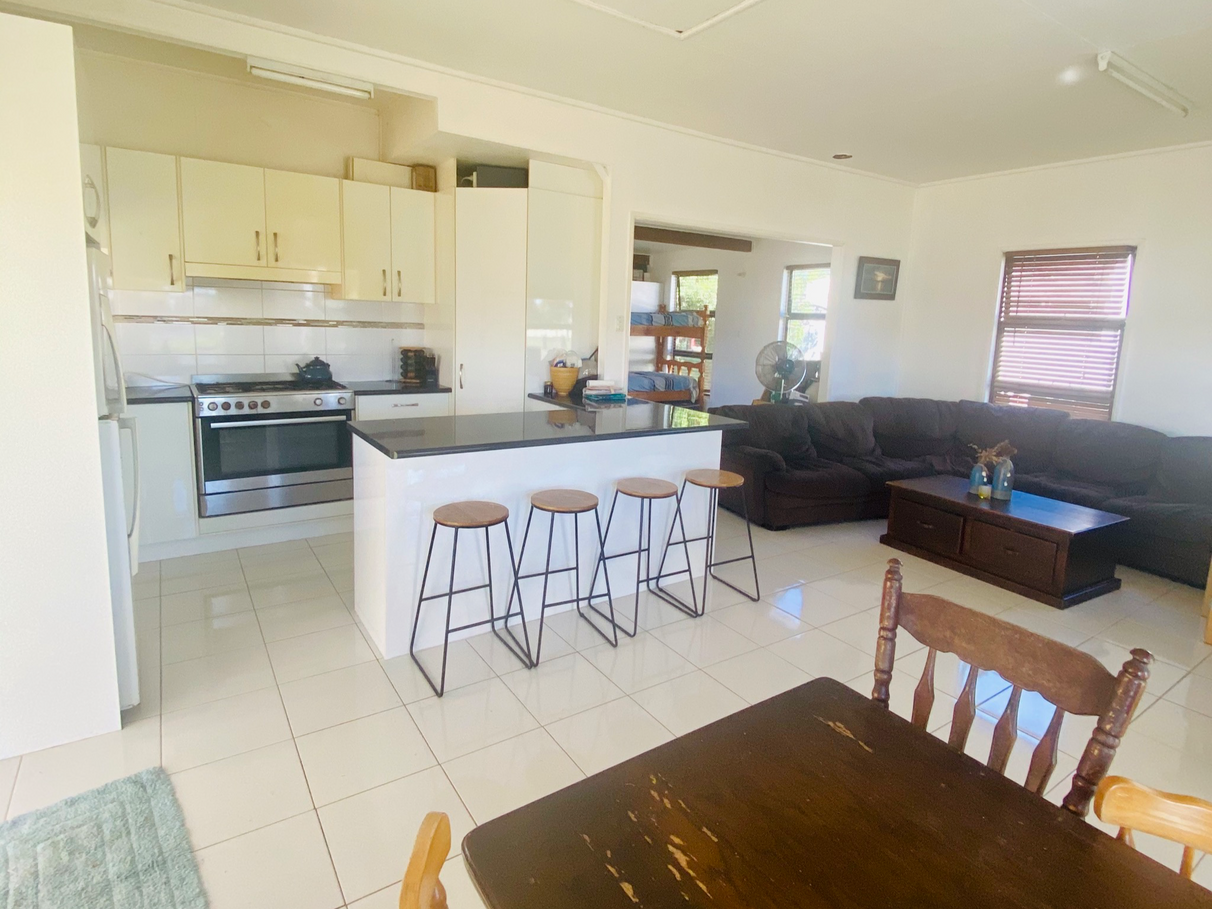 This property is set back 1 street from the water and maintains water views. The home is light and airy due to the open plan living with 2-bedroom spaces, open plan kitchen, dining area and lounge. With a newly renovated bathroom with Laundrette (washing machine included) and linen cupboard. The house has plenty of windows allowing for natural light and breeze. The property boasts a large 3 bay shed for storage with mezzanine floor providing more space than you will need.
