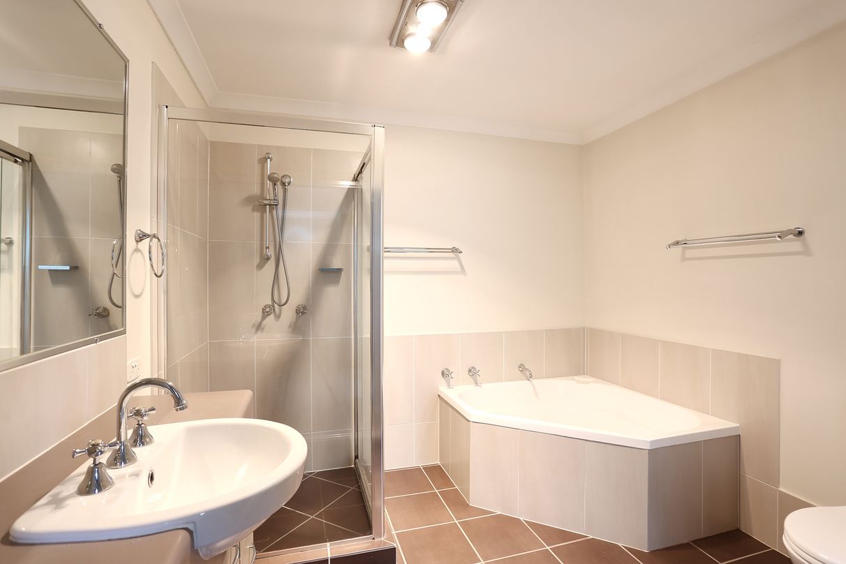Main bedroom has mirrored sliding doors which lead into large walk in robe and en-suite with bath