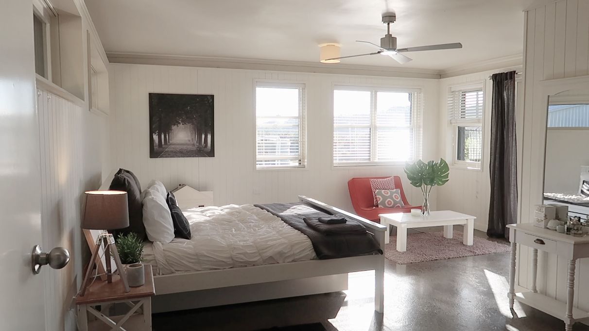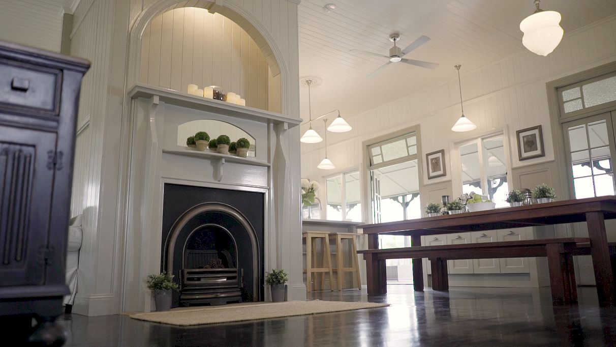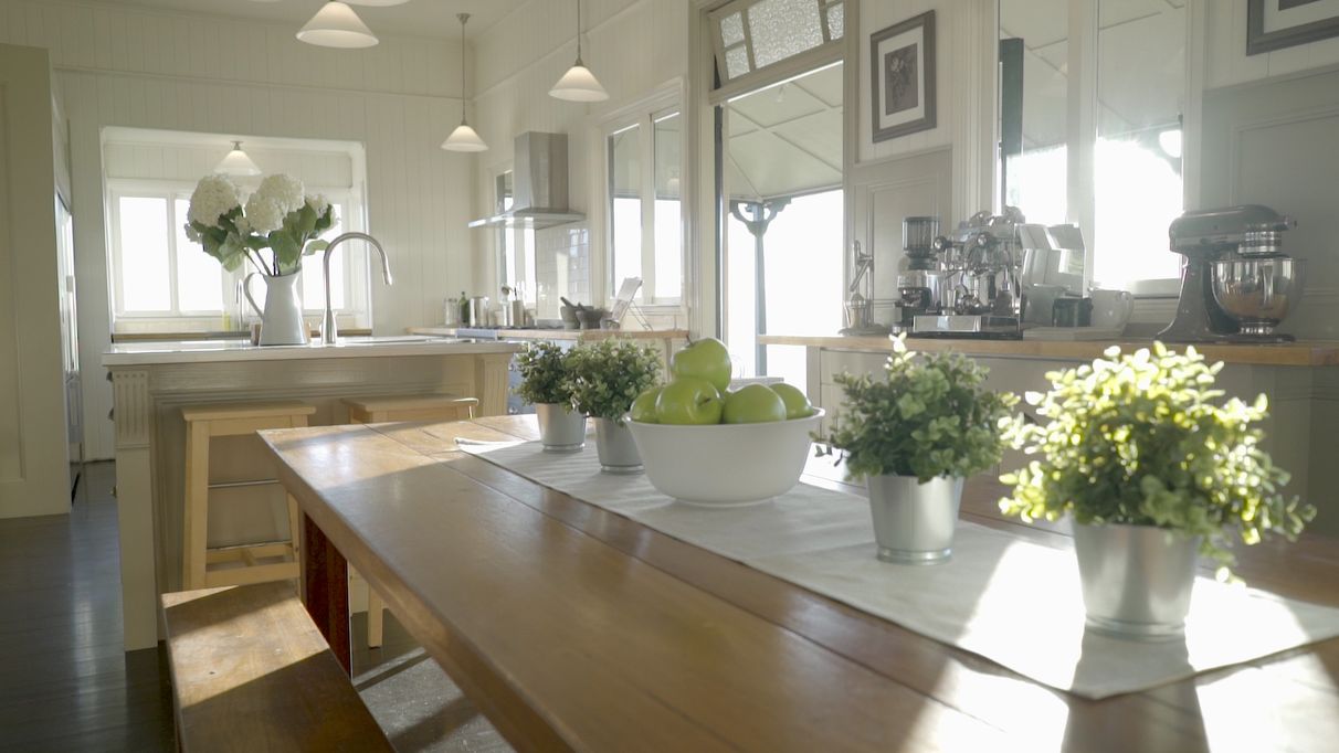 The living, kitchen and dining area is contained in a 100+ year old Queenslander which was relocated to the site and cleverly linked to the existing home, which now houses the bedrooms and bathrooms. Extensive renovation of both buildings has resulted in this expansive and characterful country home.