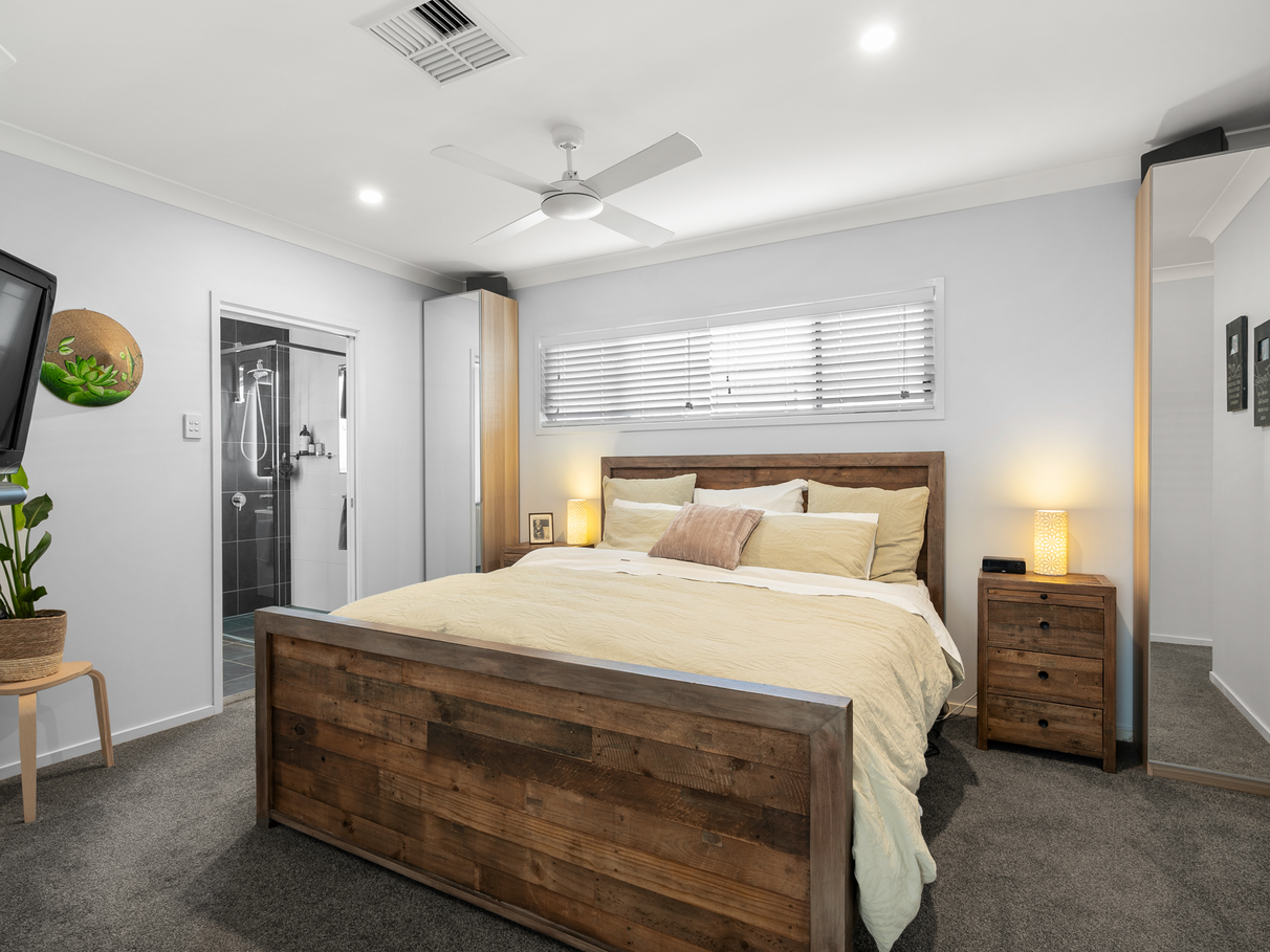 • Three Spacious Bedrooms: All with built-in robes, zoned air conditioning, ceiling fans, and plush carpet. The master suite boasts a walk-in robe and sleek modern ensuite.