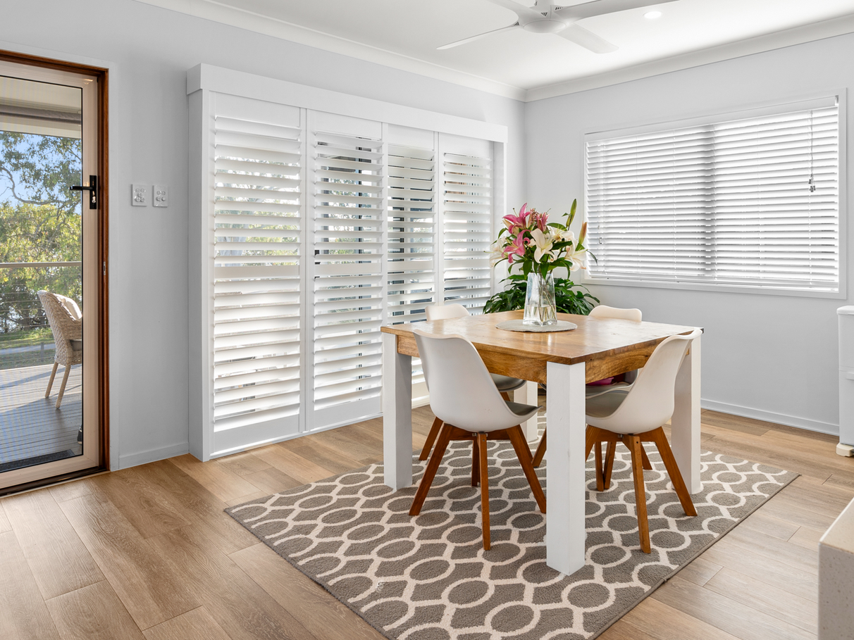 • Open-Plan Dining & Lounge: The dining area opens directly onto the large front balcony via stacker sliding doors, creating seamless indoor-outdoor flow.