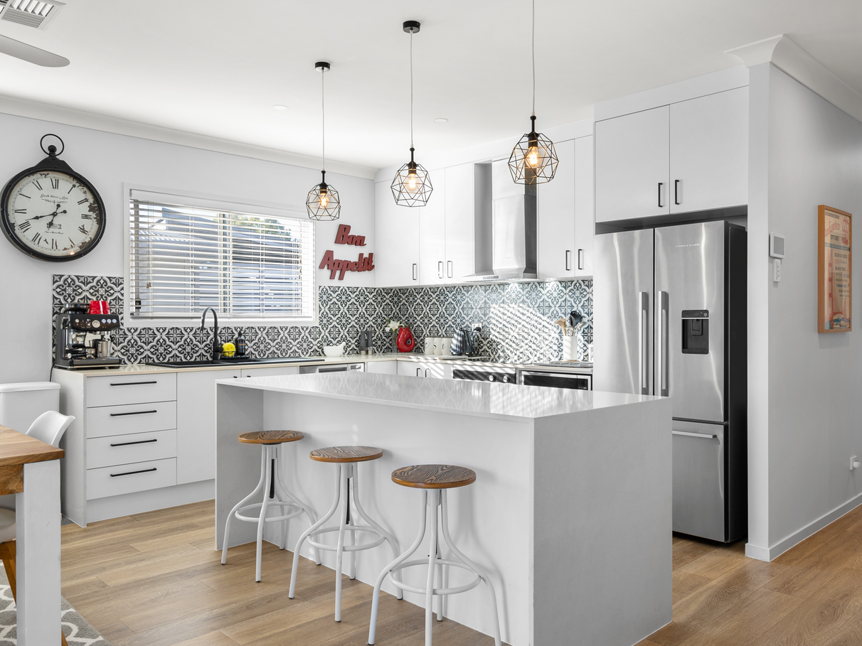 • Designer Updated Open-Plan Kitchen: Featuring stone benchtops, a walk-in powered pantry, ample cupboard storage, double-drawer dishwasher, and near-new appliances (including a 70cm induction cooktop)— perfect for entertaining and everyday ease.