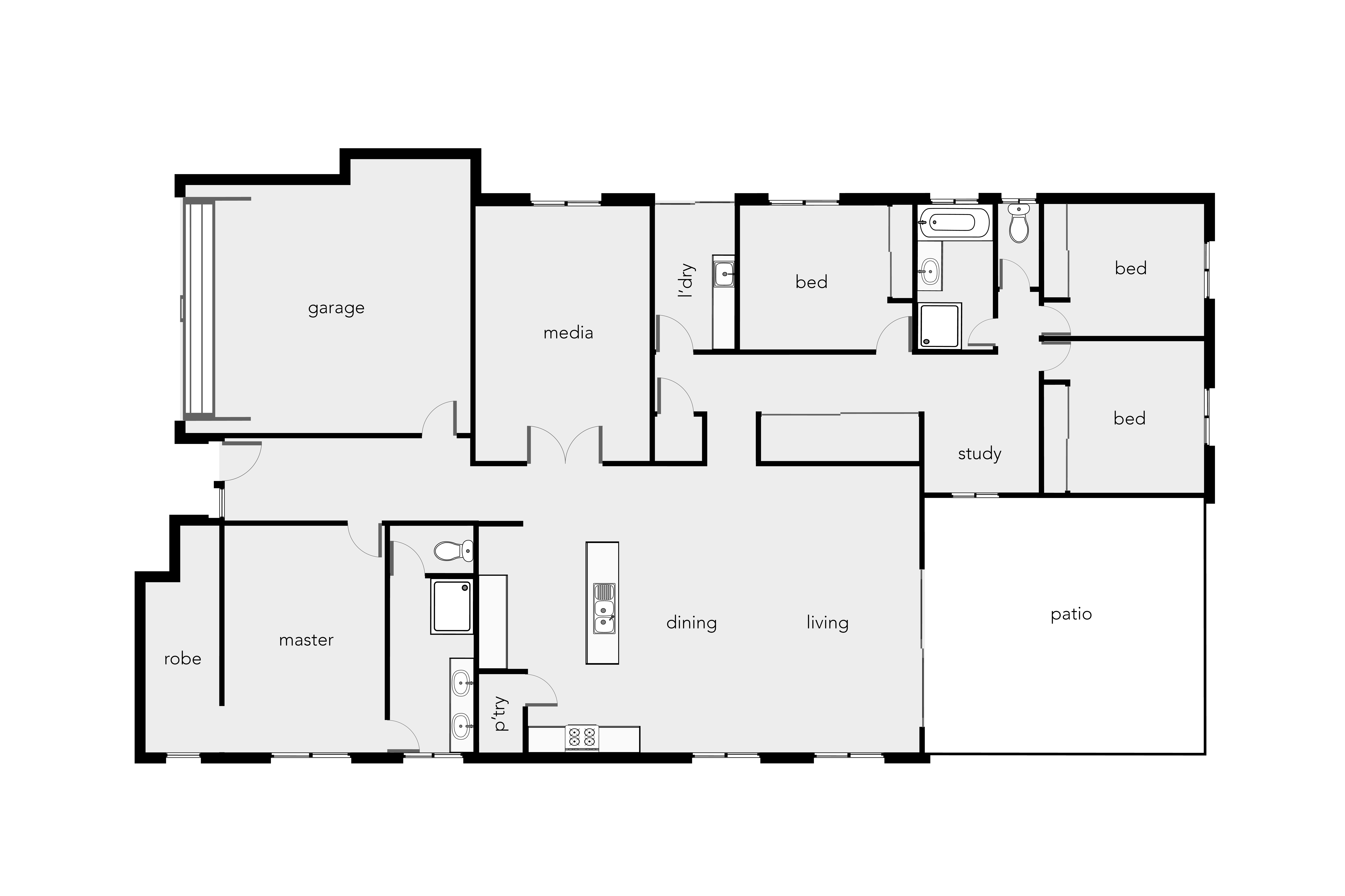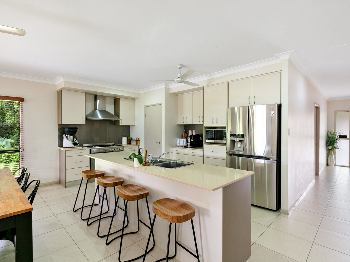 An entertainers kitchen with a generous pantry, large gas oven & cooktop, nook for your appliances and plumbing for your fridge/freezer.
