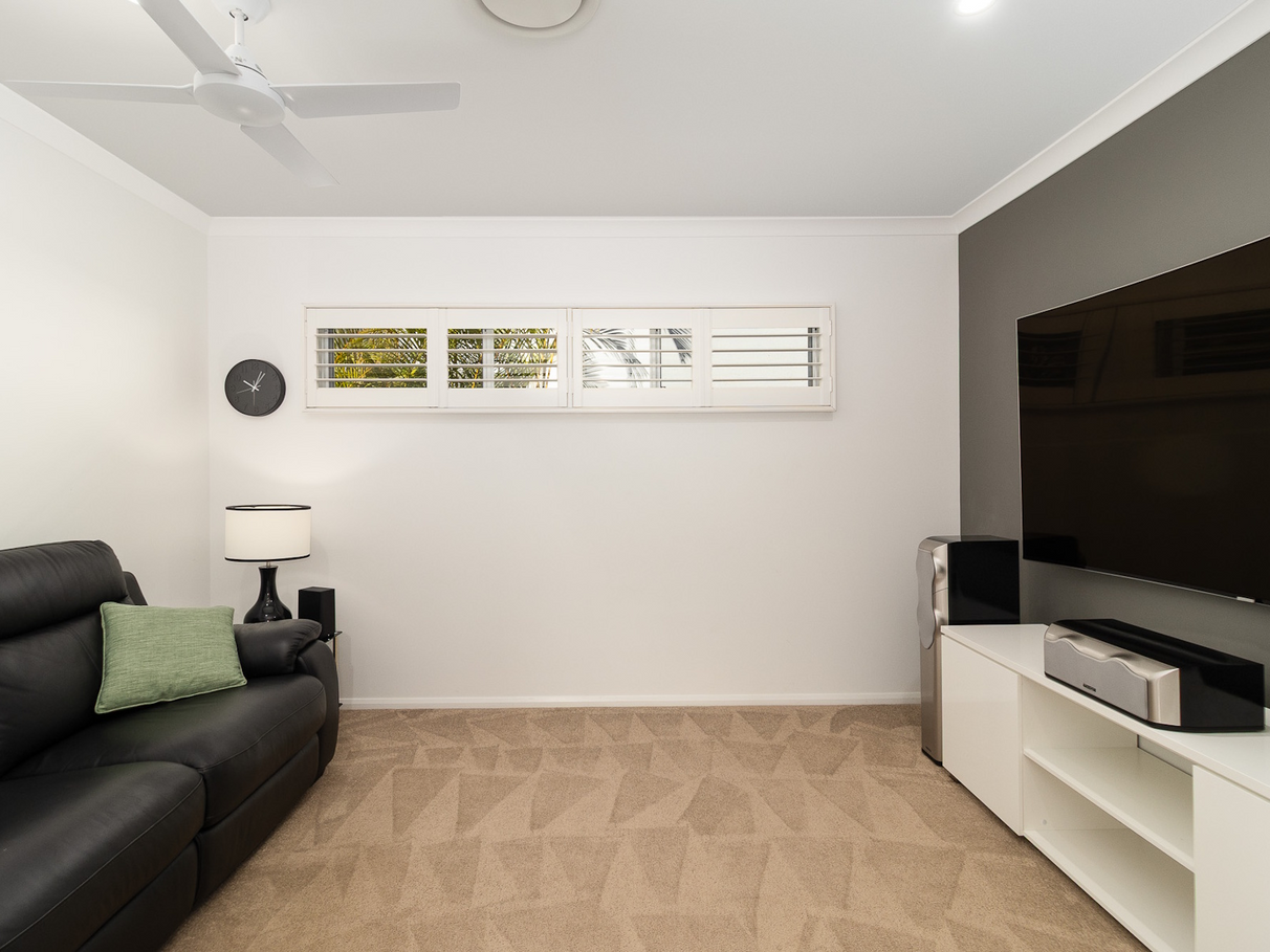 This home has all the requirements you need. On a 499 sqm block. Double Garage parking for two cars, with Insulated roller door, also additional parking space at the front of the garage. Convenient parking for RV, caravan or boat behind locked gates with shade sail cover. Low maintenance gardens comes with irrigation back and front. Unobstructed views to rear lake. Internal features, ceiling fans in all bedrooms plus ducted reverse cycle a/c. Plantation shutters in all rooms. Roller blinds on kitchen windows. Large main bedroom and ensuite with double doors, walk in robe and lockable sliding doors in wardrobe and ensuite entrances allowing for privacy. Floor to ceiling tiles in ensuite. Other bathroom also with floor to ceiling tiles with large bath, shower and vanity. Fitted carpets in all bedrooms and media room. LED lighting throughout, large ceiling fan in living area. Large modern kitchen with stone benchtops, double sinks, extra large pantry with triple doors.Dishwasher, microwave and large gas/electric range. Also a convinient tea/coffee nook. Up to date smoke alarm system. Flyscreens on all windows. Large patio has tiling with 2 ceiling fans and pull down block out blinds. All internal tiling is ceramic. Neutral decor throughout. NBN fibre also into the premises. You will have great benefit from the 6 Kw Solar system which has enabled us to have no power bills since being installed. This property is being sold with the option of fully furnished. Purchase this property now before it becomes 7 figures.