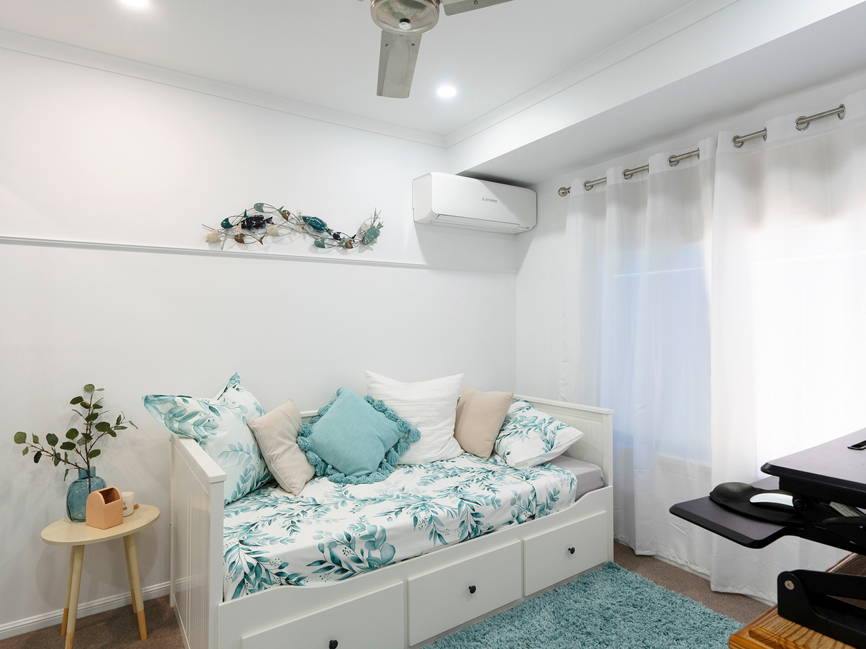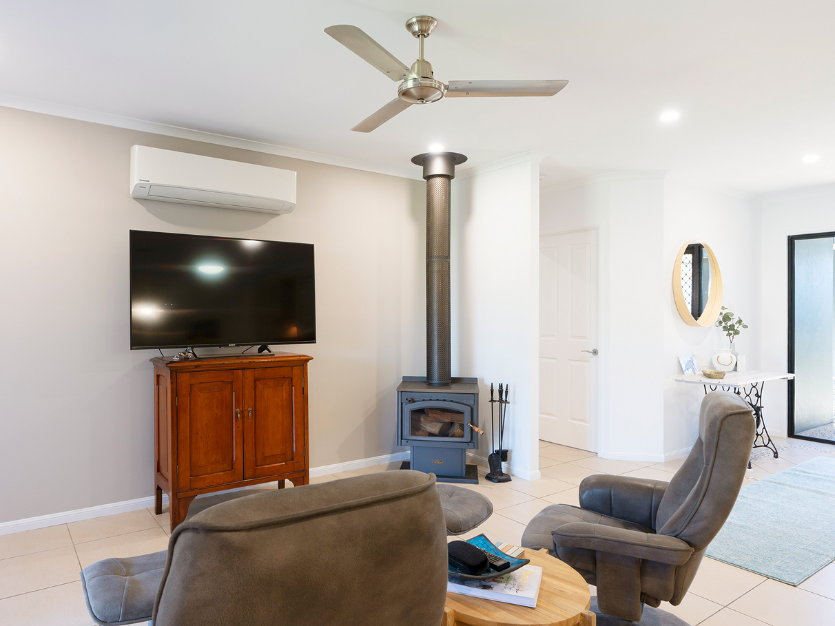 - All windows are tinted toughened glass with security screens which also have blinds and curtains, insulation in roof and walls to keep it cool in summer and warm in winter