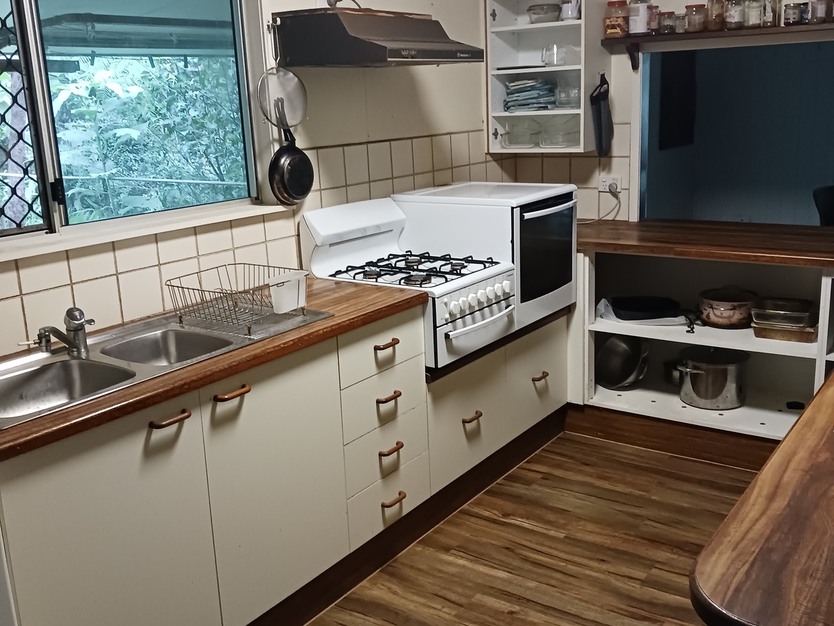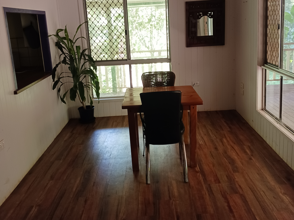 This 3 bedroom Queenslander sits on 7.5 acres of rainforest and scrub with a flowing creek year round.