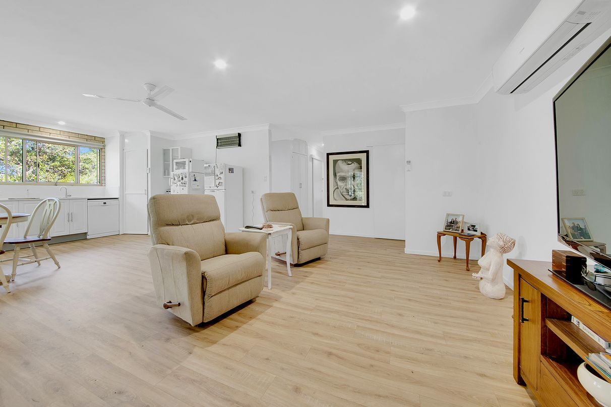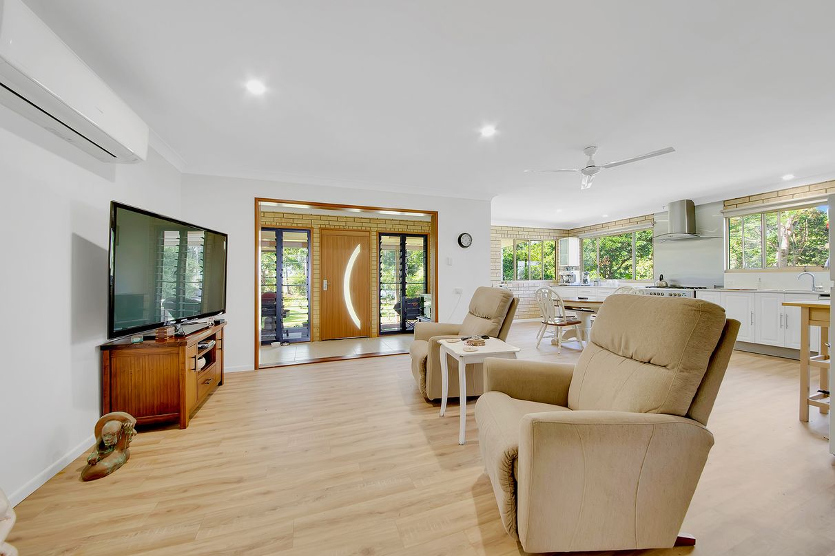Built to a high standard, this brick veneer home boasts 320 sqm of refurbished, renovated interiors cleverly crafted to enjoy the peaceful green views out every window. Presenting the change you need, you will feel immediately relaxed as you step through the spacious, flowing floor plan, modern colour palette, vinyl floors, modern colour palette, and sensational living spaces - inside and out. The open plan kitchen, dining and living area opens through to a sunken lounge heated by a wood burner provide plenty of space for family or friends to gather. Air-conditioning throughout ensures comfortable tropical living all year round. This relaxing residence draws from the peace and quiet of the surrounding countryside and is ideal for entertaining. The elevated front deck is the perfect place to enjoy your morning coffee in the sun.