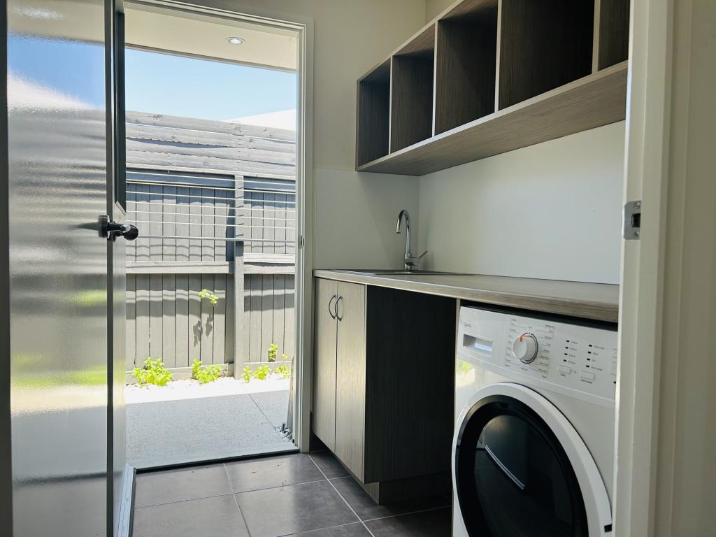 Laundry features built in cabinetry for an under bench washing machine and dryer to enable plenty of bench space and overhead cubes for laundry baskets. The laundry door opens directly onto an outdoor drying court.