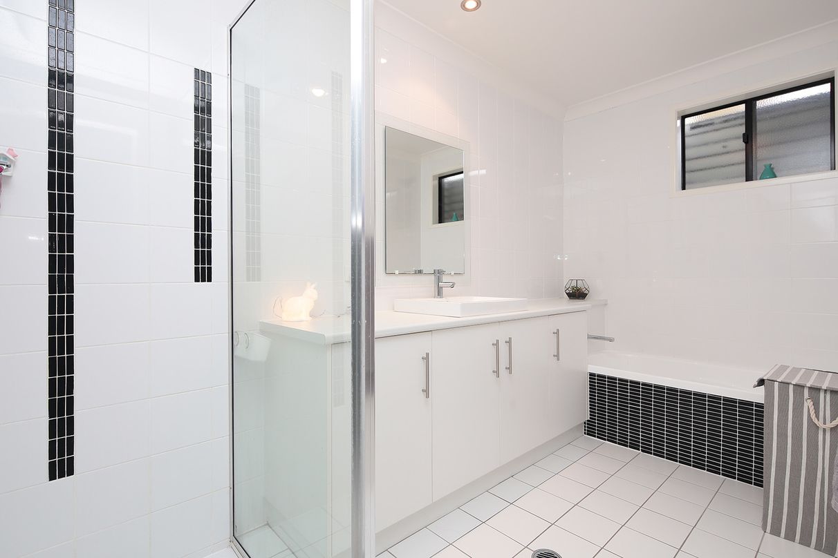 A modern family bathroom with bathtub and separate toilet is central to three generous bedrooms - all tiled with split system air conditioners, ceiling fans and built in robes - and a lovely ensuite to the master bedroom.