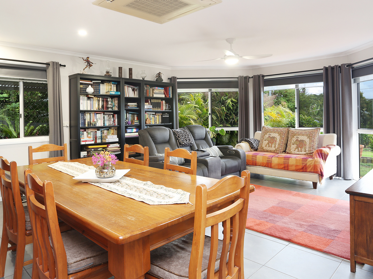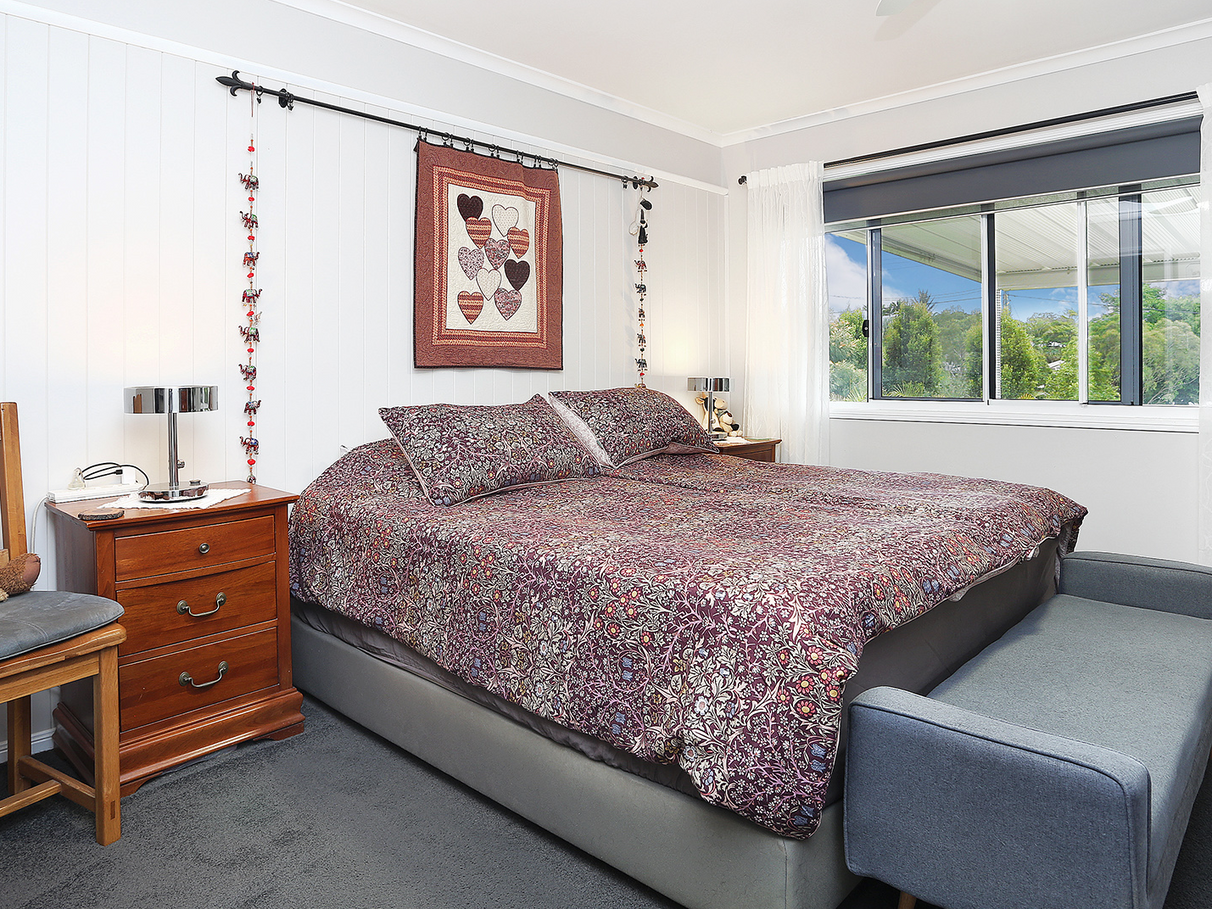Located in a quiet street, this tastefully decorated and elevated 4-bedroom, 3-bathroom home on a fully fenced 2010m2 offers a view of spectacular sunsets over nearby Mount Ngungun and Mount Coochin.