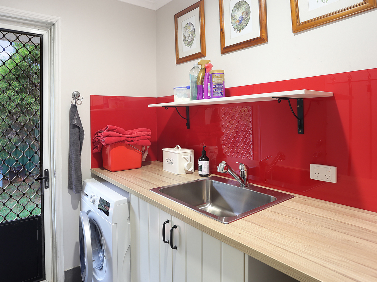 There is a beautifully functional internal laundry with storage and stainless steel sink set into the bench and access to the outdoor drying area. And for those rainy days an undercover washing line under one of the carports.