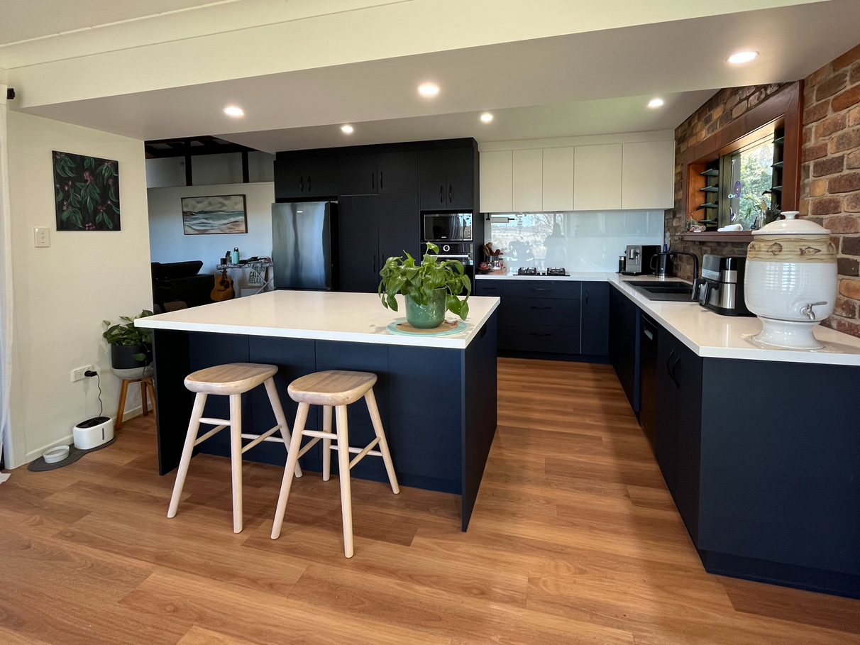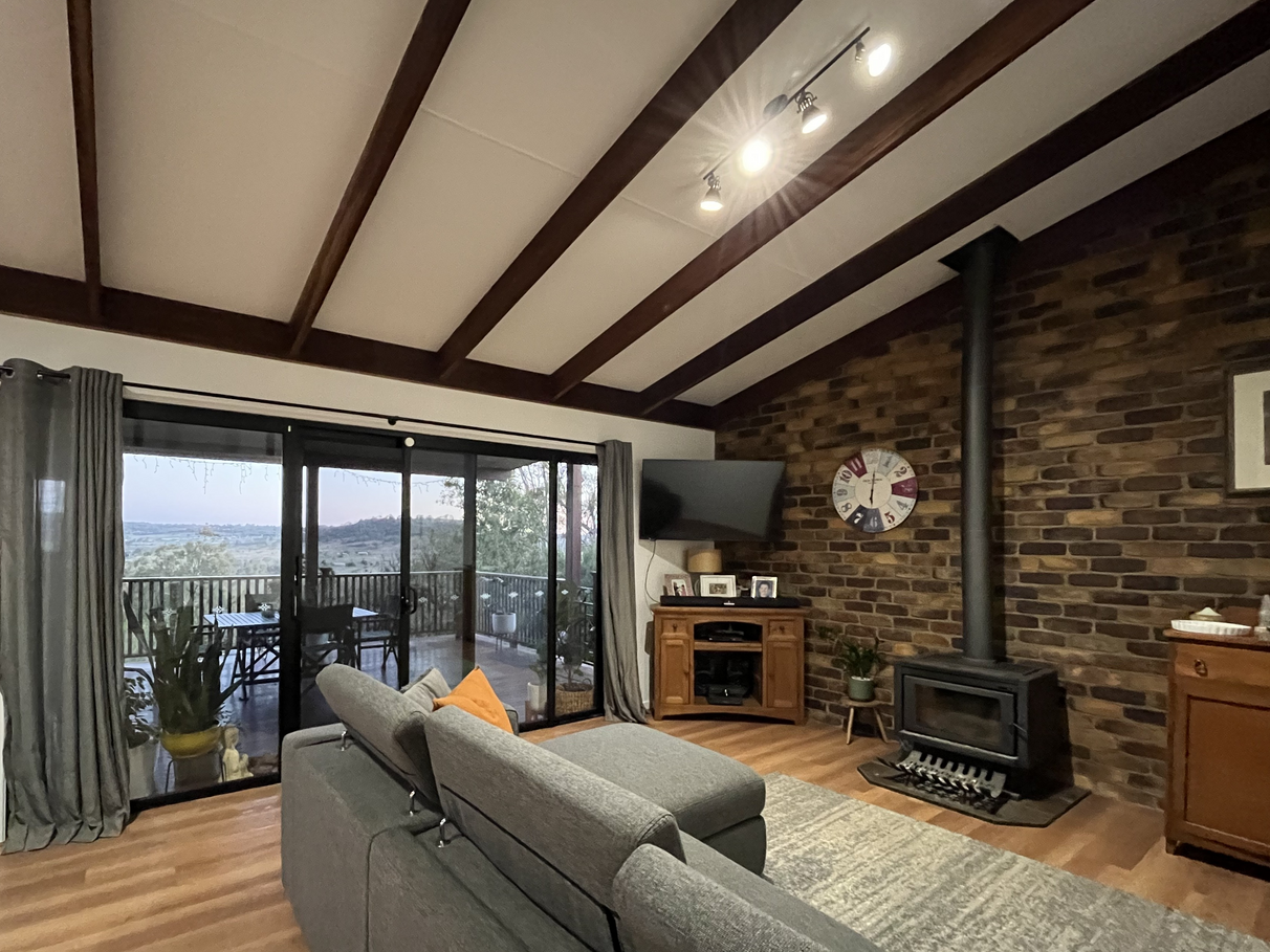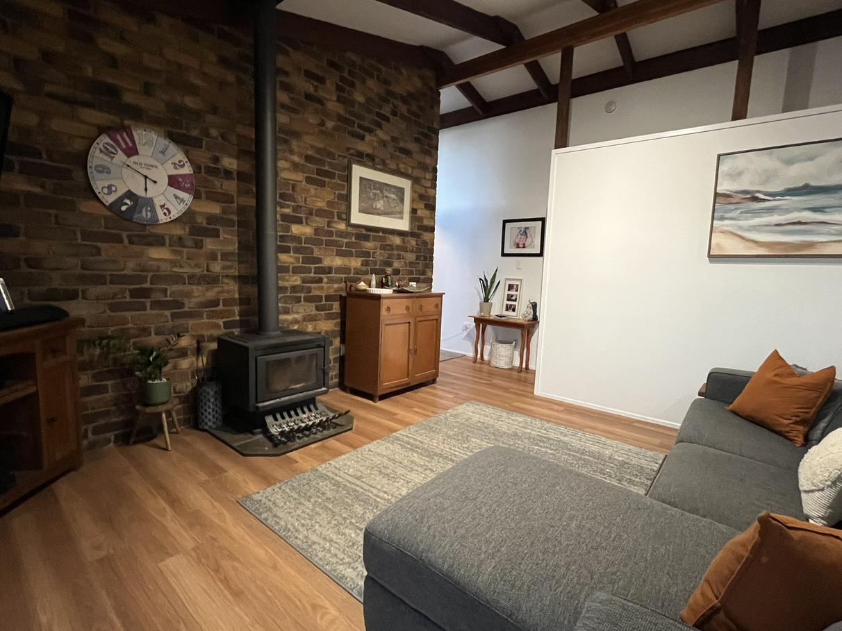 The open-plan lounge and dining area seamlessly connects to the deck, kitchen, and family/meals room, creating an inviting space for family gatherings and entertaining. The home is equipped with two split-system air conditioners and a cosy wood fireplace, ensuring year-round comfort. Vinyl flooring runs throughout, and the entire home has been freshly painted inside and out.