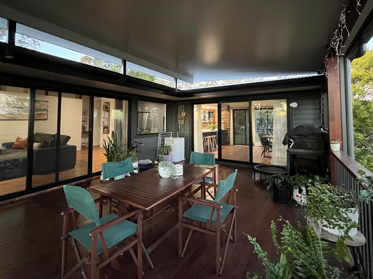 The home features a massive 5m x 7m deck, perfect for entertaining or relaxing. The deck includes provisions for an outdoor kitchen, with a built-in BeefEater BBQ already installed, making it ideal for alfresco dining. The secluded and private yard is surrounded by established gardens and trees, providing a peaceful bush setting where you can enjoy the local wildlife and birdlife.