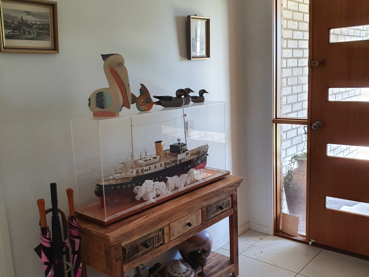 This is 270 sqm 3-bedroom, BV home on a slab. The land area is 1495 sqm and is almost flat and is not subject to flooding. There is a 2-way bathroom, serving as a semi-ensuite to the master bedroom, with separate bath & shower. The master bedroom has a walk-in robe, whilst the other 2 bedrooms have built-in robes. The bedrooms are carpeted, with the rest of house and rear patio being tiled.