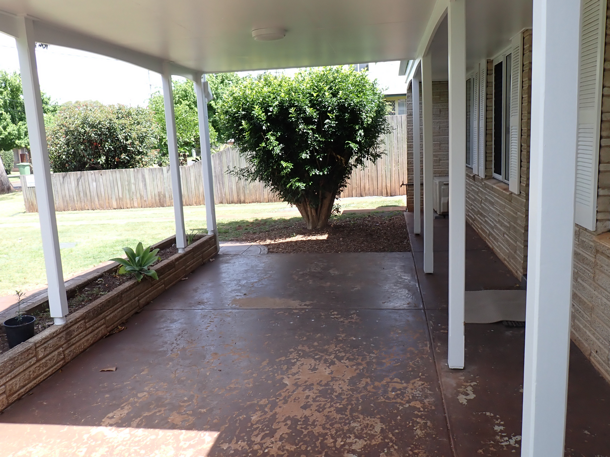The property has a low maintenance yard with established trees/shrubs which provide privacy to the covered outdoor entertaining area at the front of the property which also shelters the front access to the home.