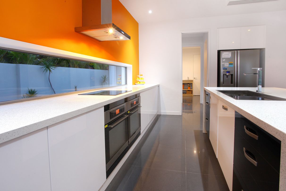 Kitchen includes a large butlers kitchen with large pantry and a large island bench, with dual ovens.