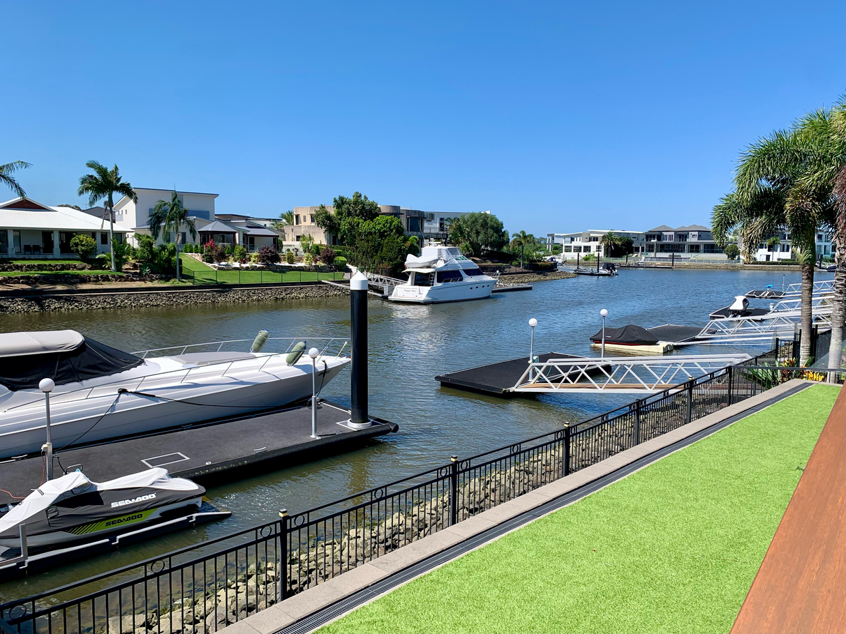 - Waterfront Paradise: Enjoy the highly coveted north-to-water position with an impressive 18.5 metre water frontage, complete with a 12m dual pylon quality Aqua Pontoon with 2 roller jet ski docks fitted and Pro Fenders to all sides, ideal for boating enthusiasts or simply soaking in the serene water views.