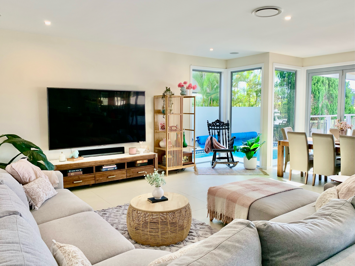 - Ultimate Entertainment Hub: Open up the huge North facing 7.5 Metre Stacker Doors to your new extra large undercover entertaining area with hanging 55" LED Smart TV, or retreat to the Home Cinema featuring a big screen and LCD projector for private movie nights. Integrated a Niles Sound System fills the air with music to the living and entertaining area. This home offers countless ways to entertain in style and comfort.