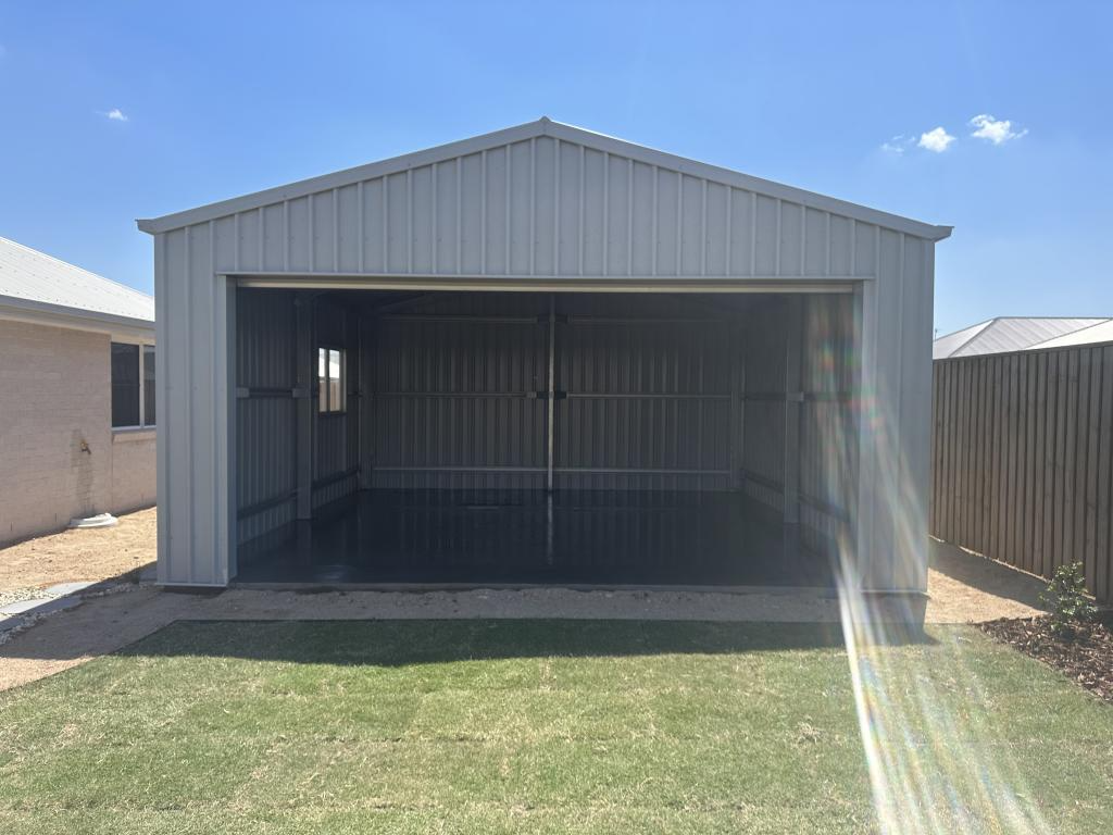 6m x 6m shed with power, painted concrete floor- No road access but perfect space for workshop, home gym or storage.