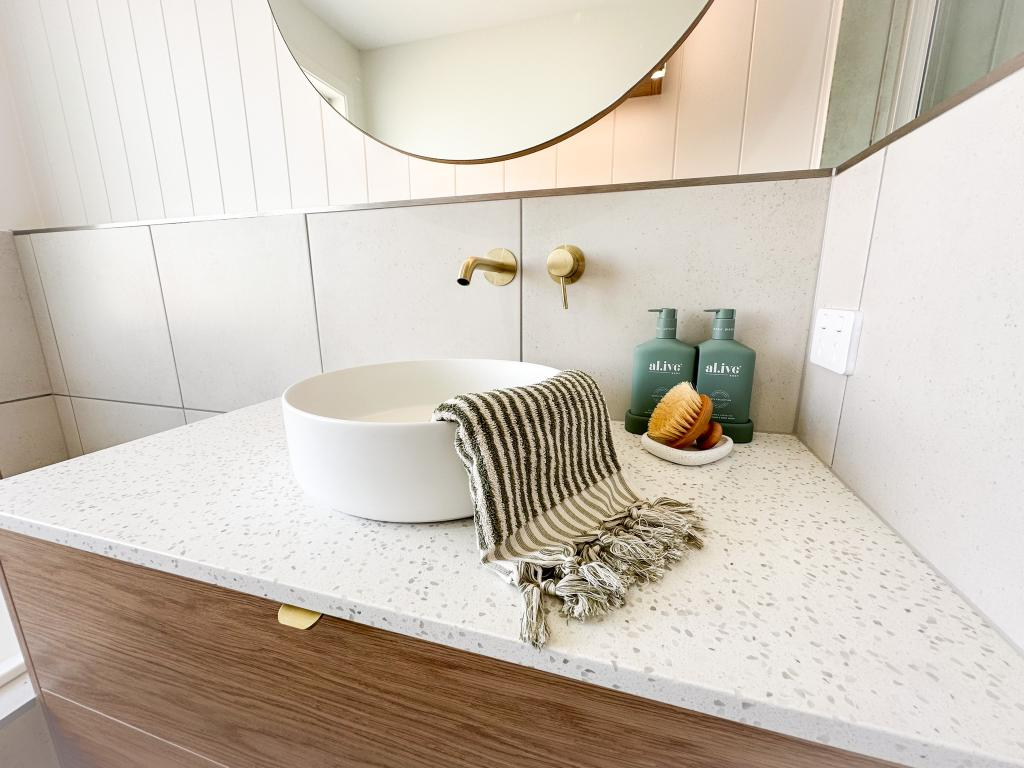 Stone bench tops to kitchen, walk in pantry and bathrooms.