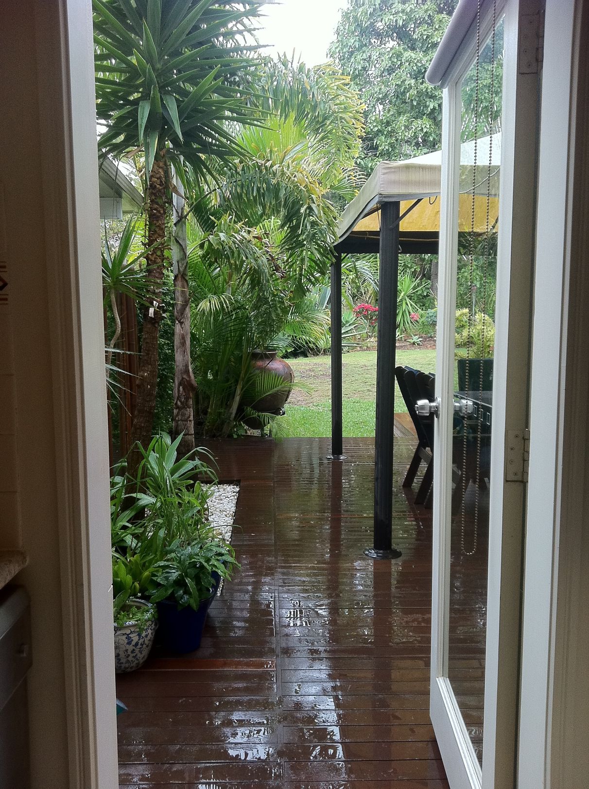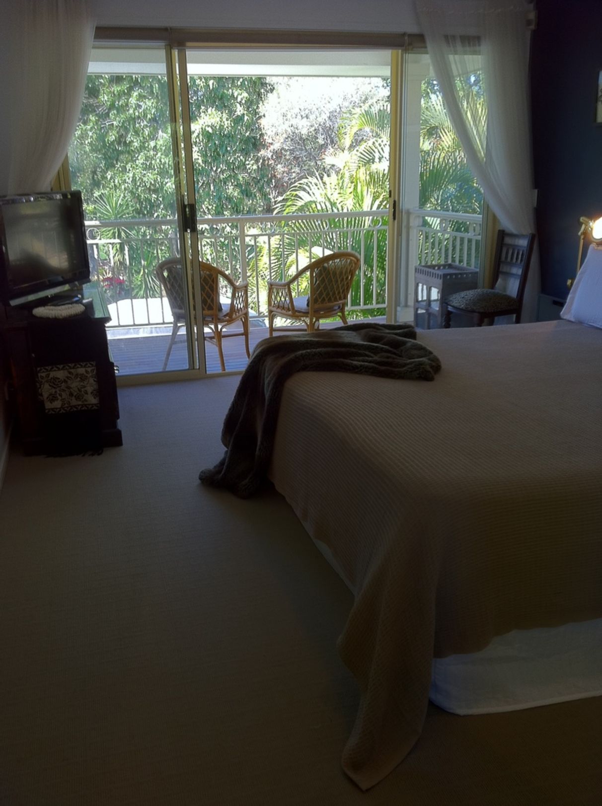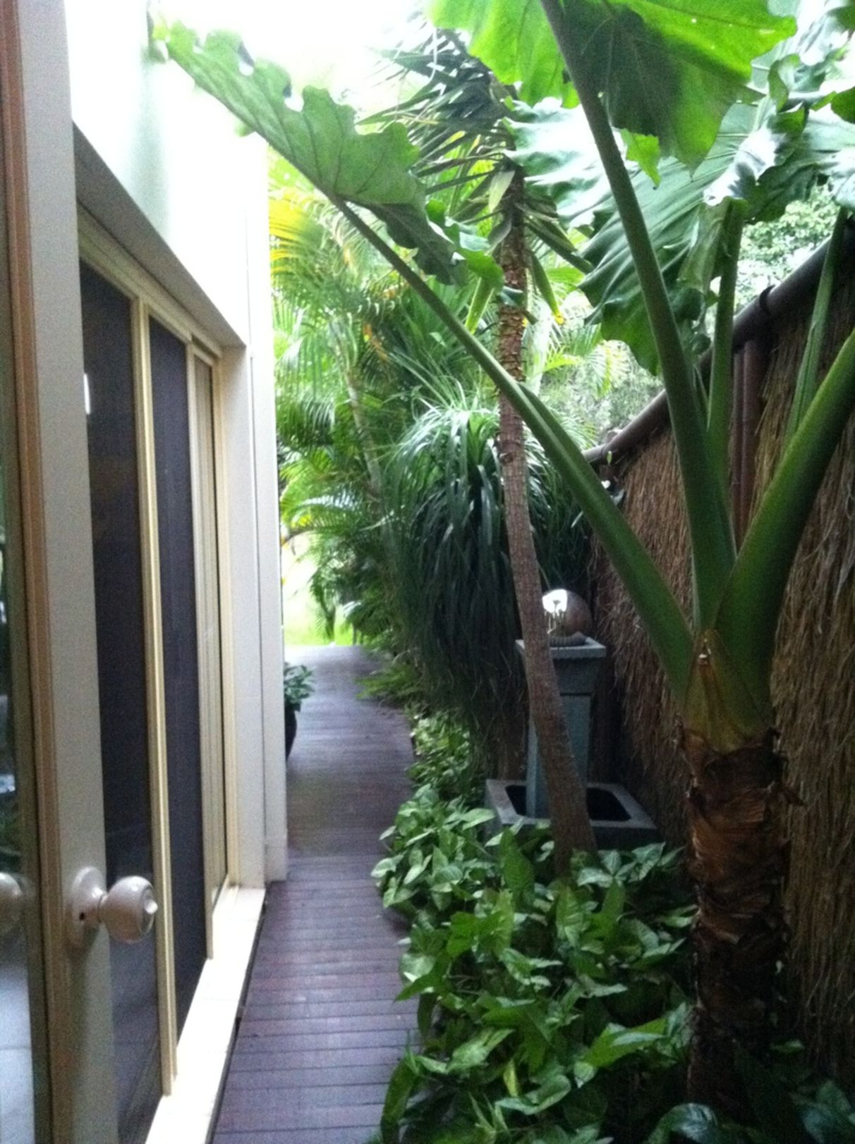 This looks out on lush Balinese style gardens filled with an array of palms, large Yuccas, Agaves, Cordylines Frangipani and other beautiful trees attracting colourful butterflies and birds.